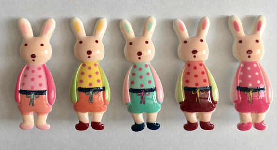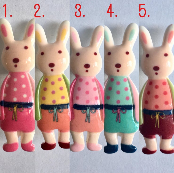 Resin Bunny Rabbit dressed brooches pastel colours 5 designs