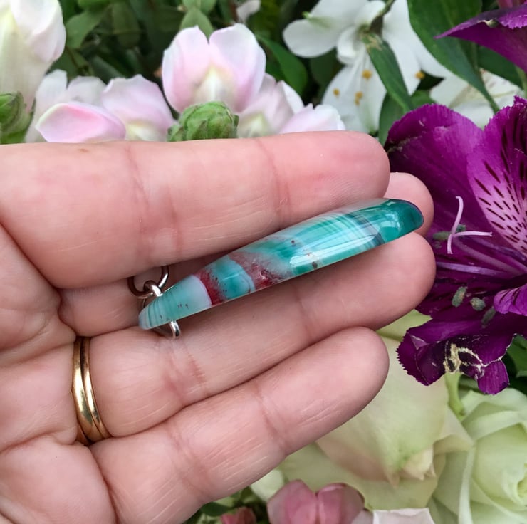 This stunning and vibrant Banded Agate pendant bead is something which should be on show so I thought it would make a fantastic keyring, or handbag charm for any lucky lady. If you wanted to buy a gift as a token of love, or friendship, then this would be ideal. Equally, ideal for anyone who just loves Gemstones.