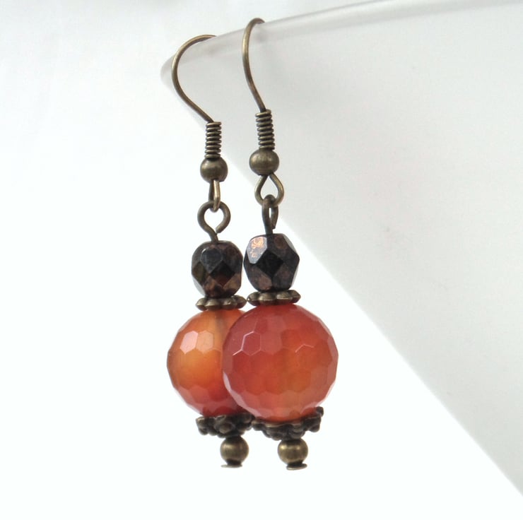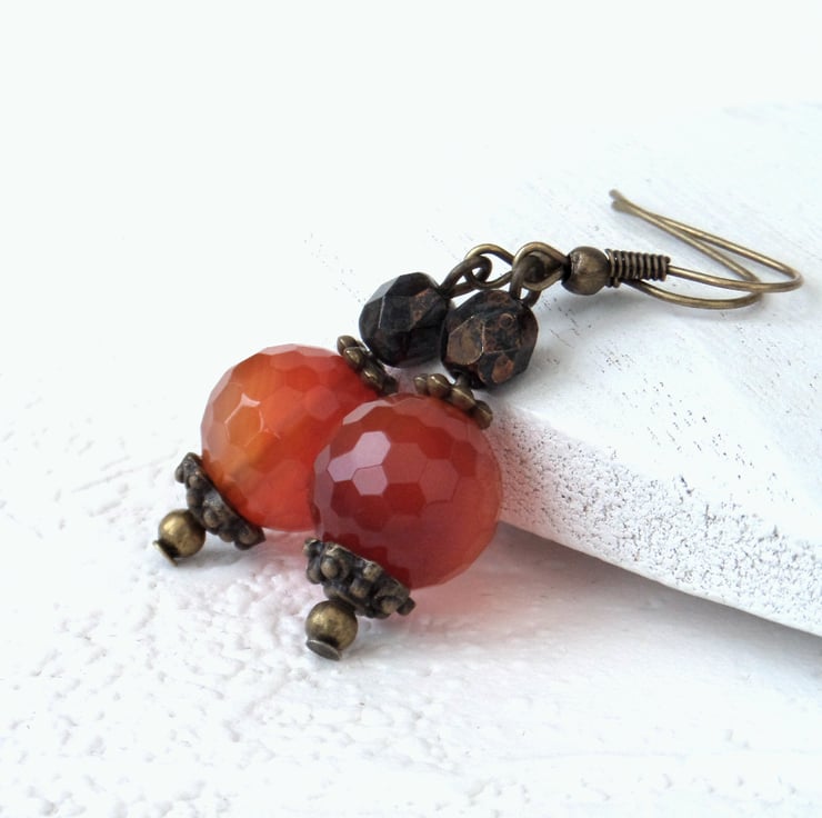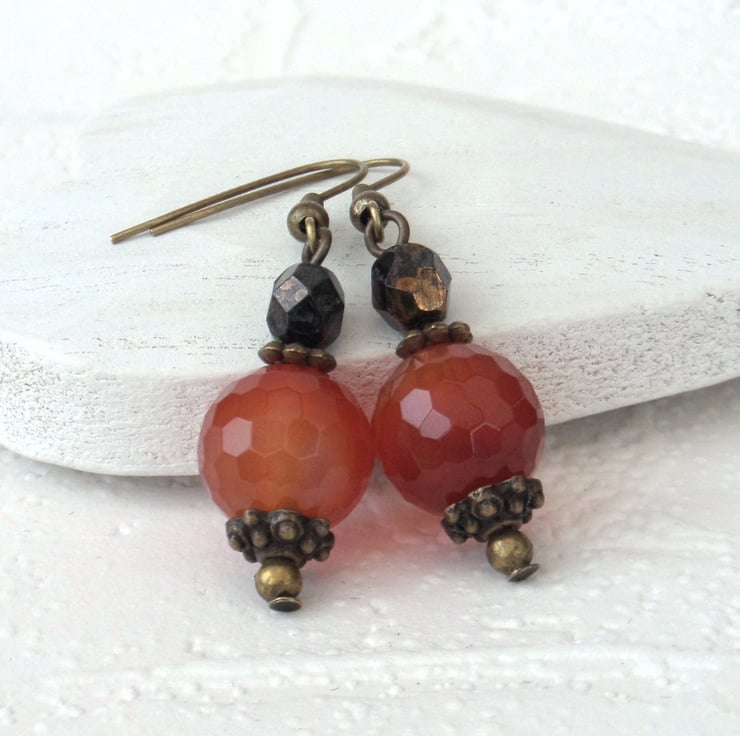 The carnelians are 12 mm rounds. They are faceted, which adds to their beauty & texture.