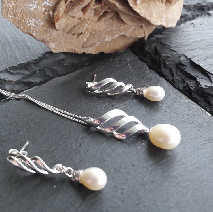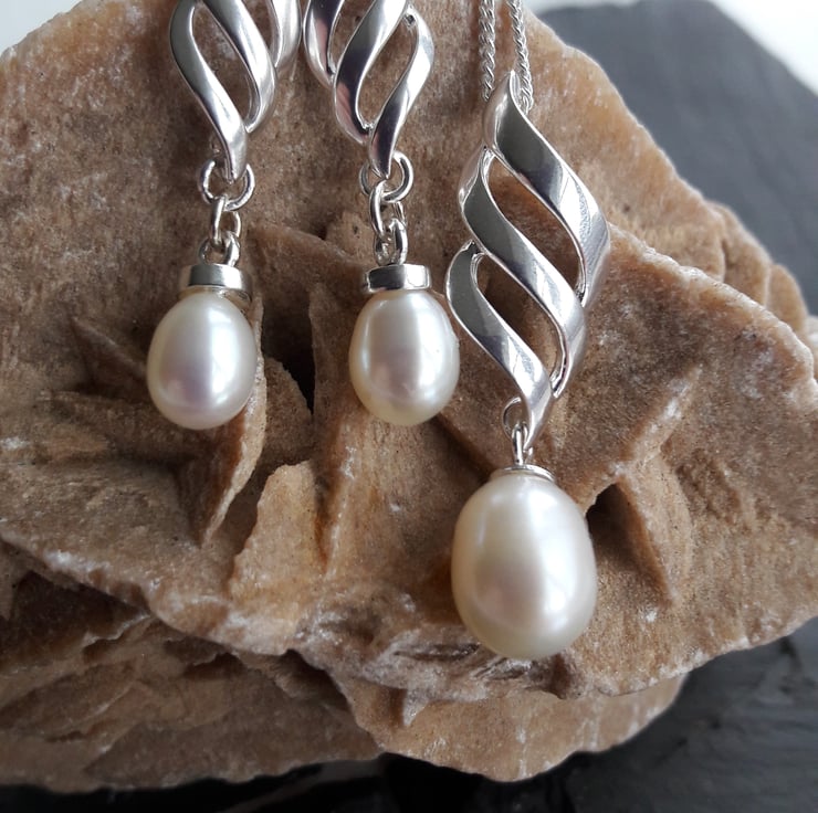 This setting is more modern than some in my bridal range but I'm sure will suit your special outfit. The earrings hang 3cm from the post, which is an integral part of the fitting so can't be swopped for hooks. The pendant hangds 3.5cm from a chain. It comes on an 18in chain but 16 or 20 are also available, please put in the comments box.