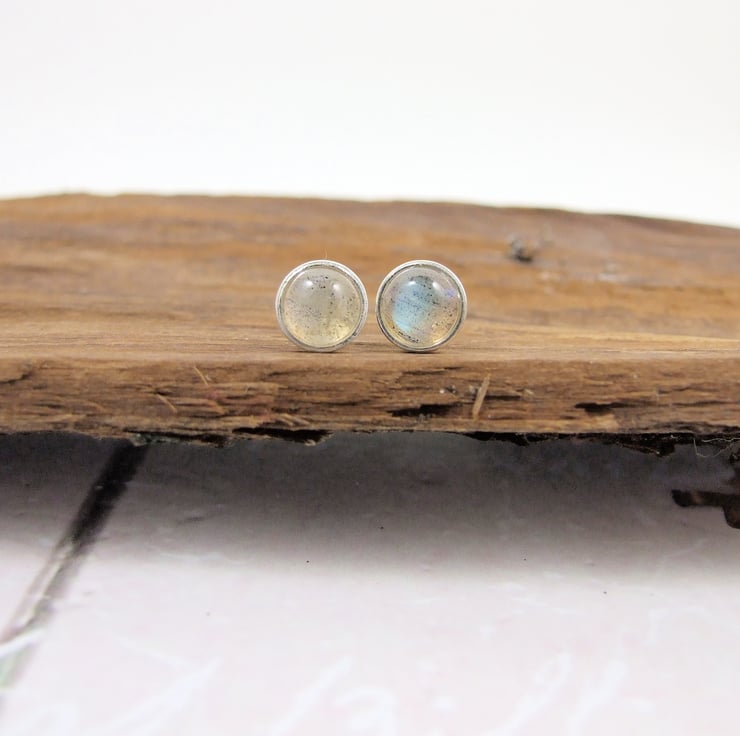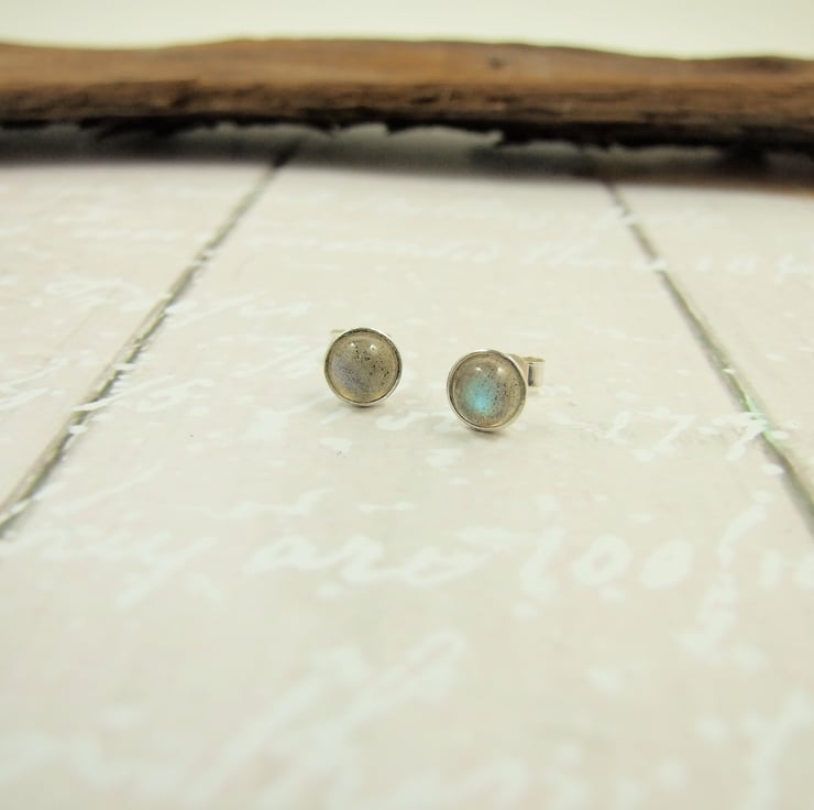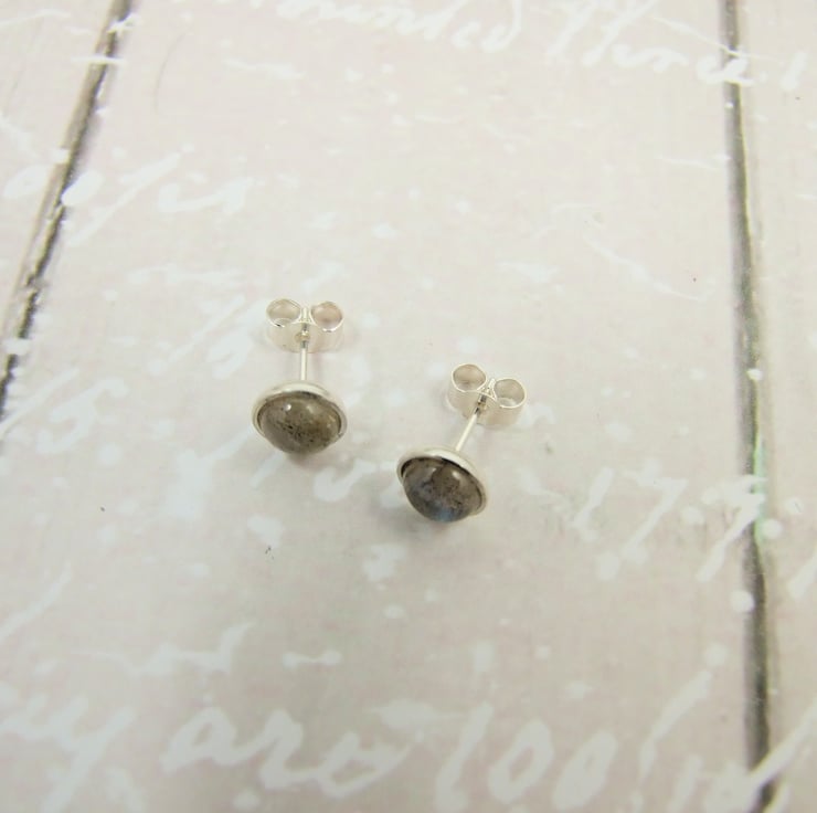 Labradorite Gemstones set in .925 Sterling Silver, stud with slider back fittings. The gemstones measure just 6mm across.