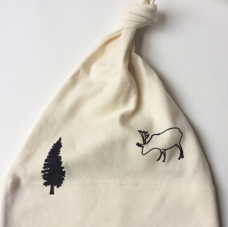 Reindeer Children, toddlers, babies, organic cotton ecru pixie style knot hat