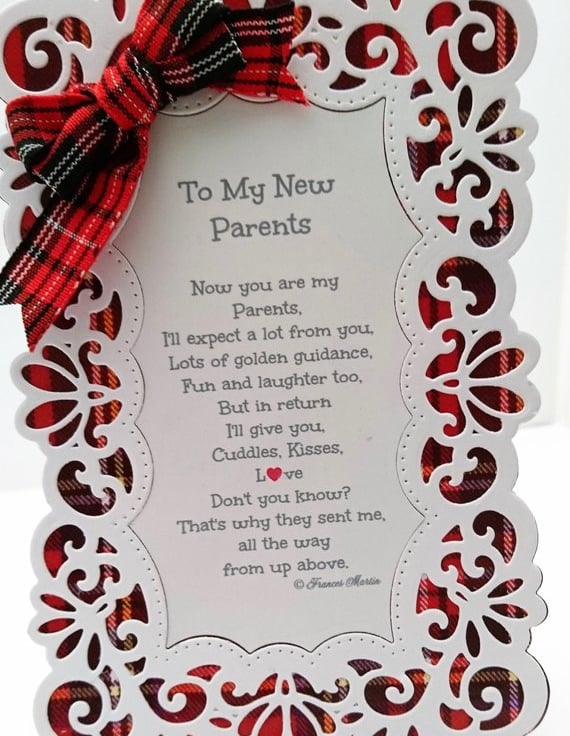 A unique Baby card with verse “To My New Parents”, as if written from newborn to the New Parents. The poem is printed in a childlike font with a message of expectations. Pink and white for New Baby Girl, blue and white for Baby Boy or Unisex Scottish Tartan A great Keepsake card. Copyright of this verse remains with © Frances Martin HeartToSoulCards. Please do not claim this verse as your own or reproduce. Thank you. All my cards are handmade in my wee studio in Argyll Scotland.