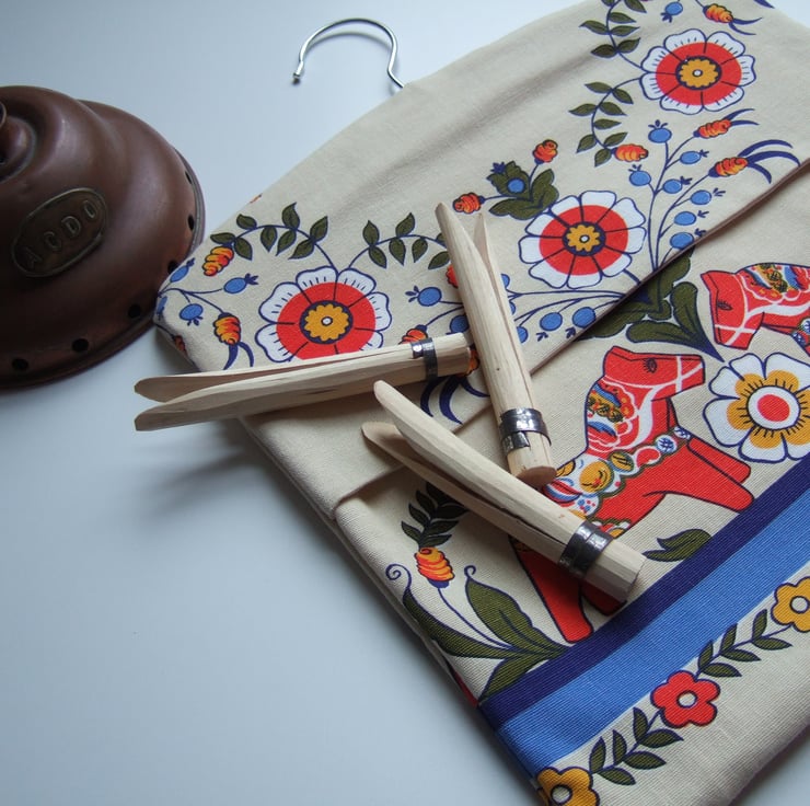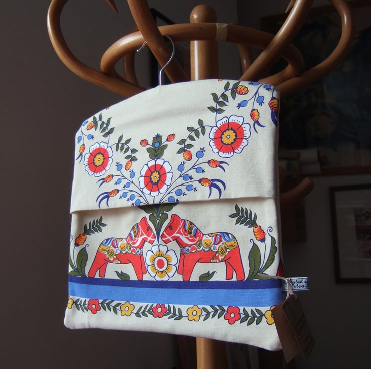 Peg bag, made from Swedish Dala horse vintage tablecloth.