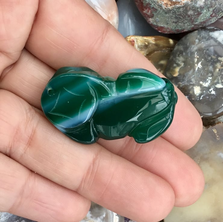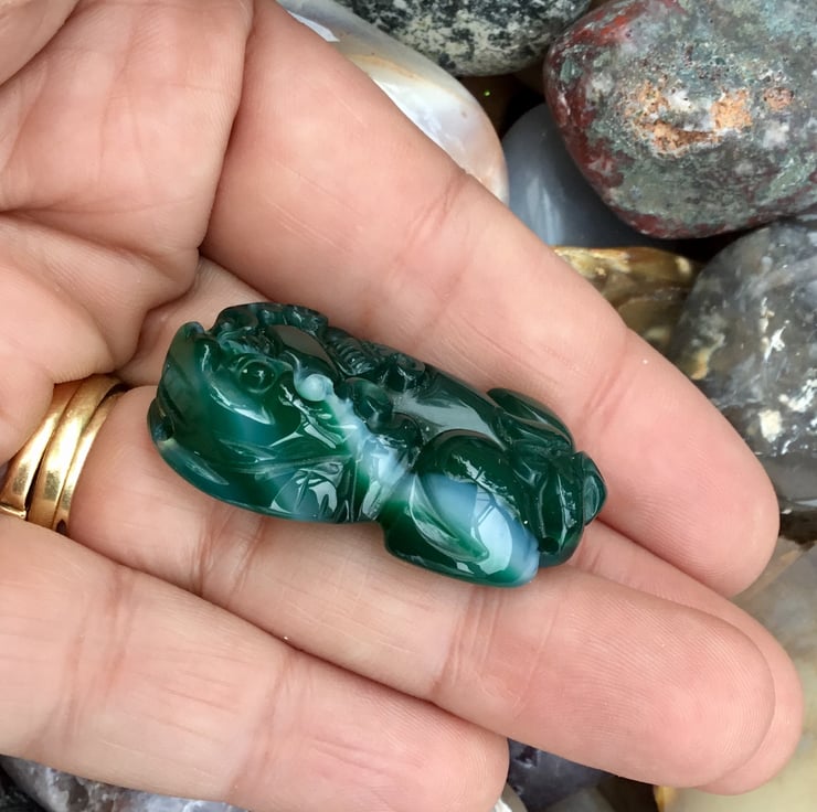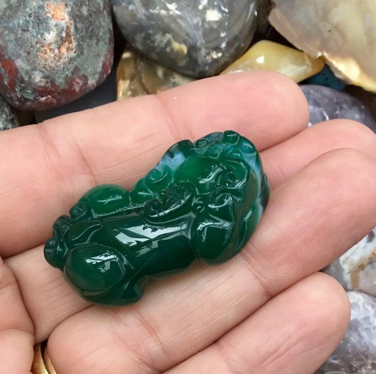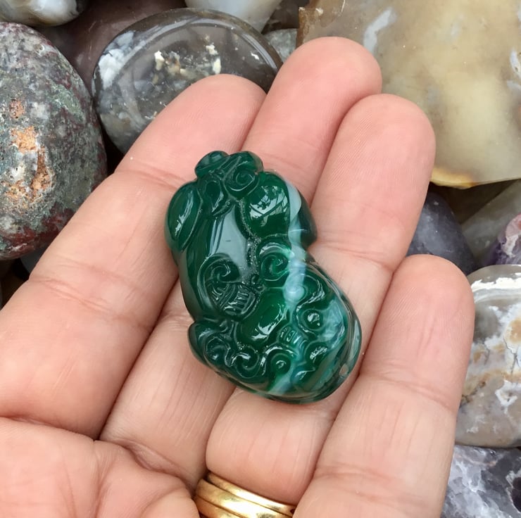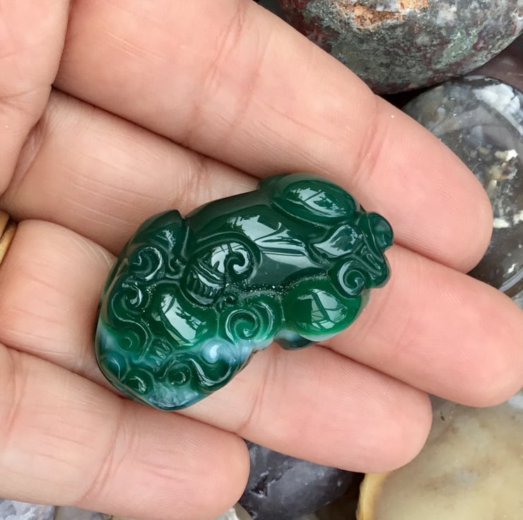 Beautiful Green Carved Chines Dragon Agate Gemstone Bead, a substantial gemstone bead, perfect for a jewellery or crafting project.