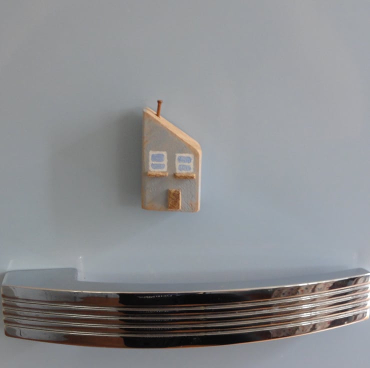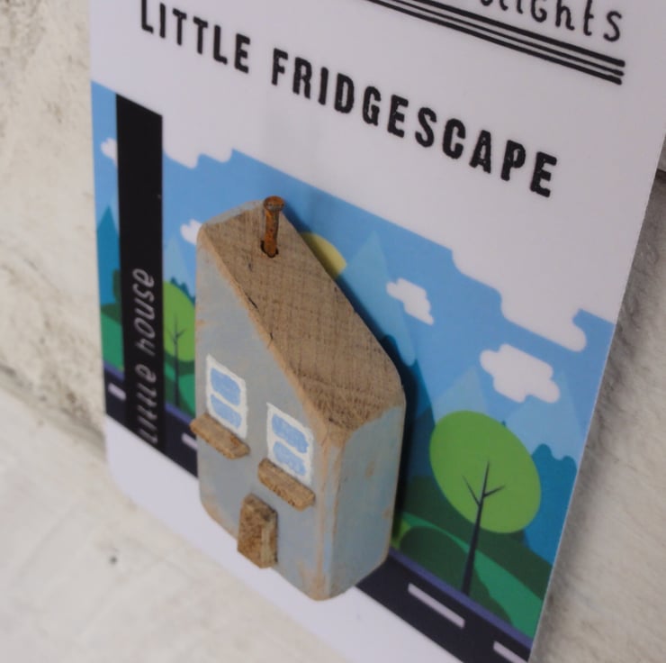 House has a tiny oak door, oak windowsills and a rusty nail chimney. Attach the house to your fridge (or other metal surfaces) with the fitted strong magnet, capable of holding paper or photos.