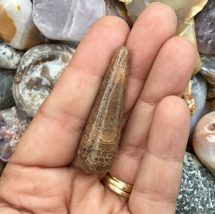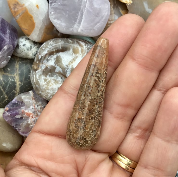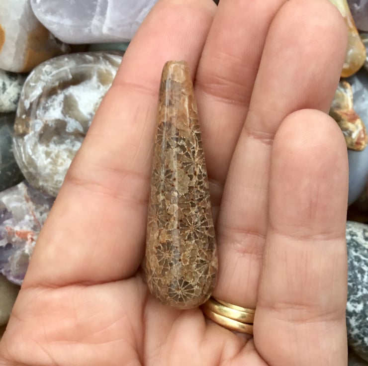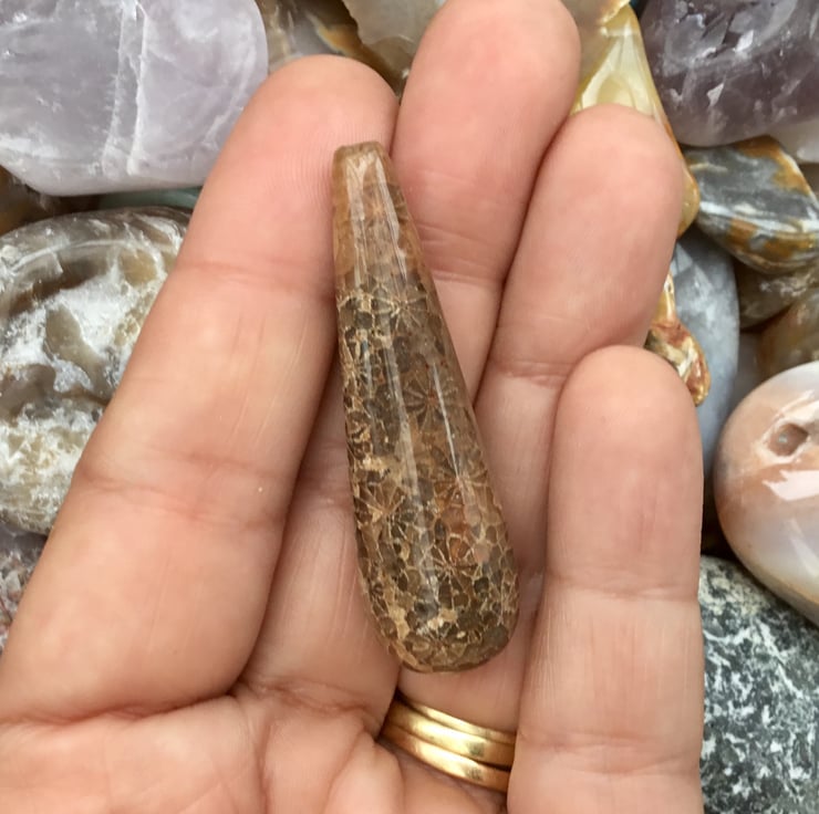 Beautiful Chrysanthemum Fossil Coral Gemstone Cylindrical Drop Bead, a substantial gemstone bead, perfect for a jewellery or crafting project.