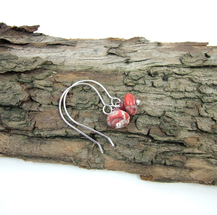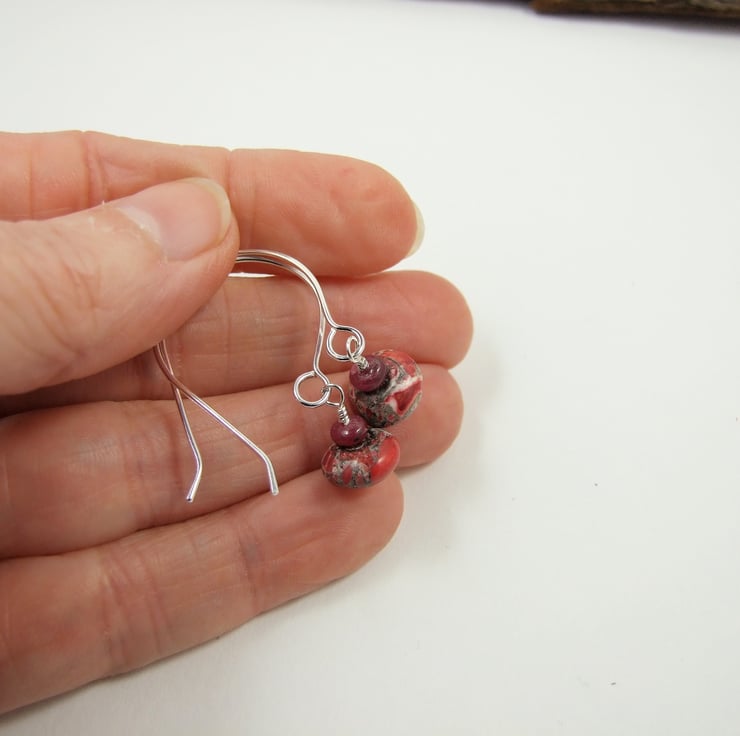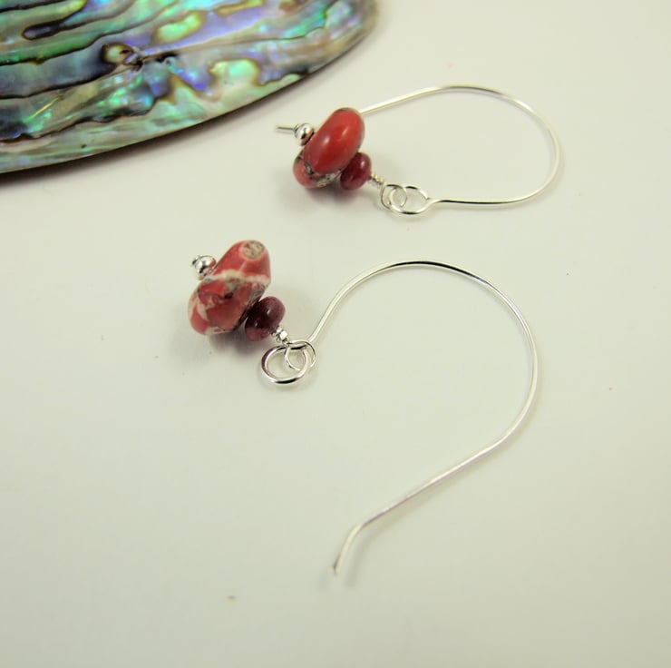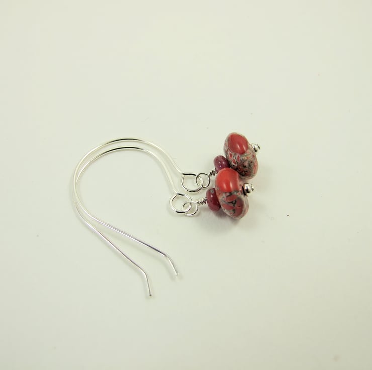 Dropper Earrings, Red Jasper with Ruby Gemstone and Sterling Silver.