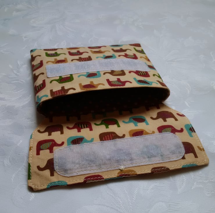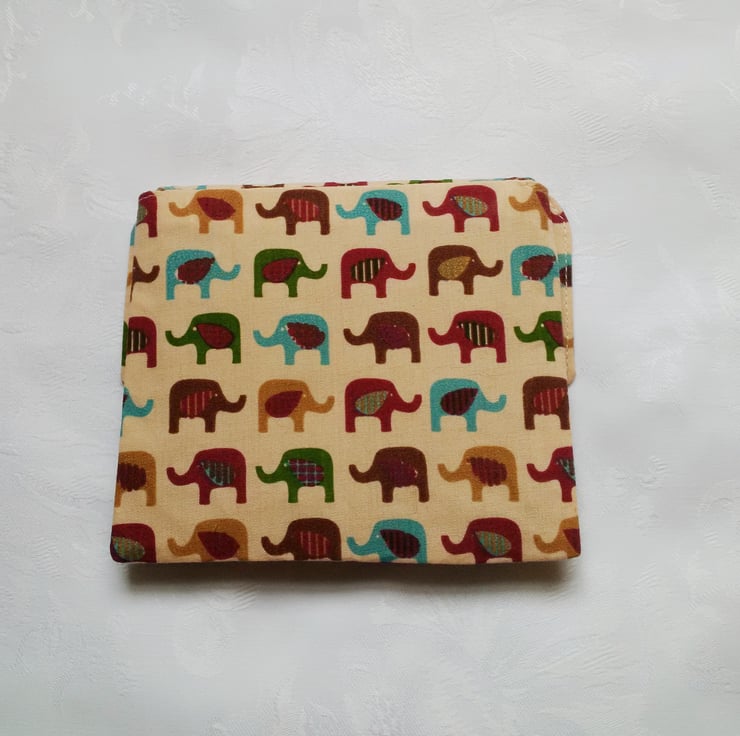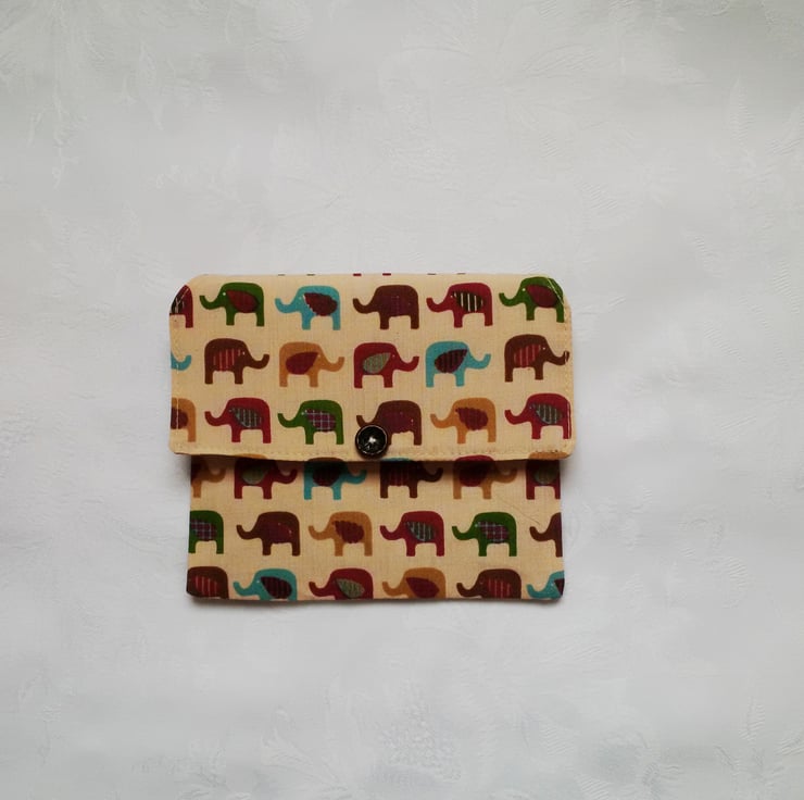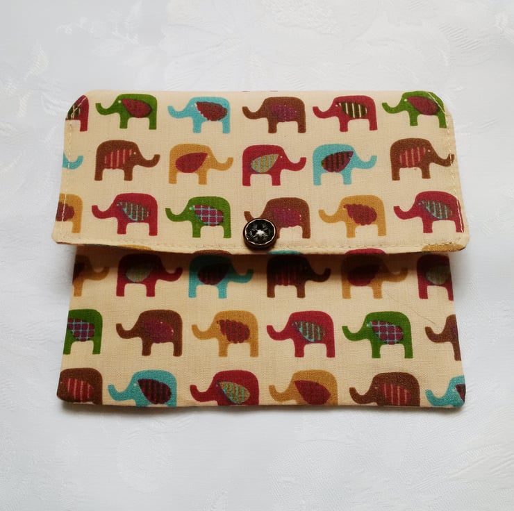 Cream elephant design poly cotton fabric purse.