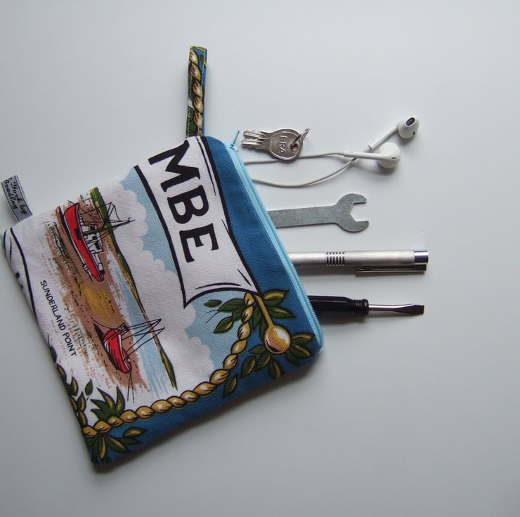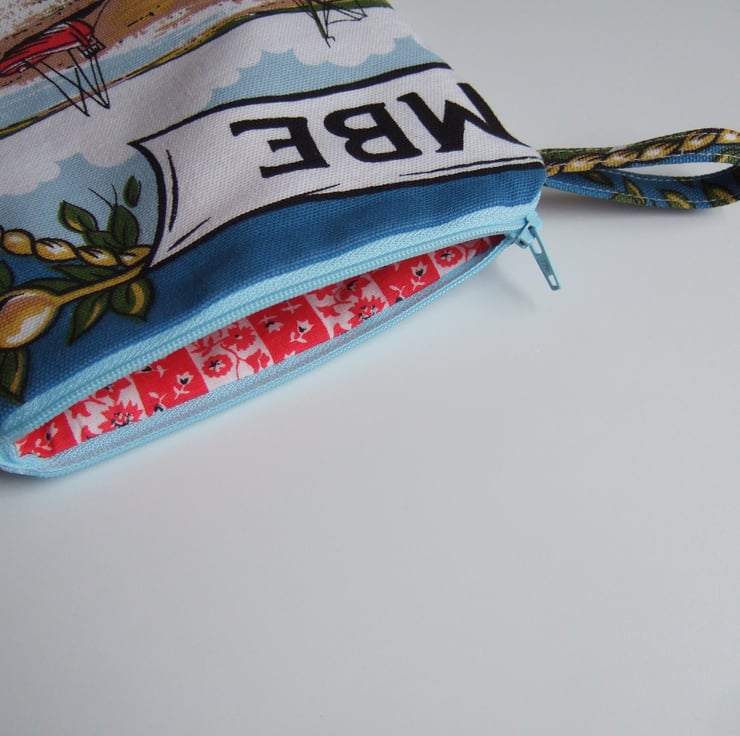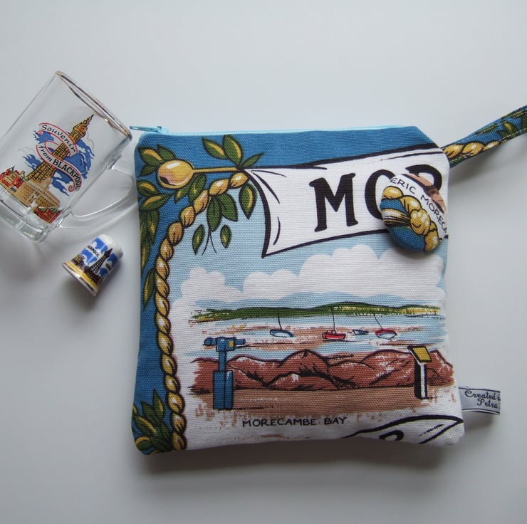 Morecambe in Lancashire, vintage tea towel purse, pouch or makeup bag.
