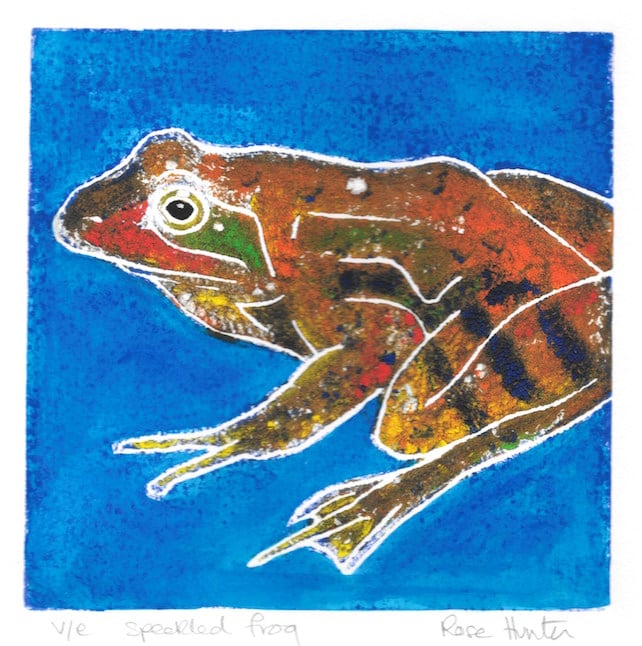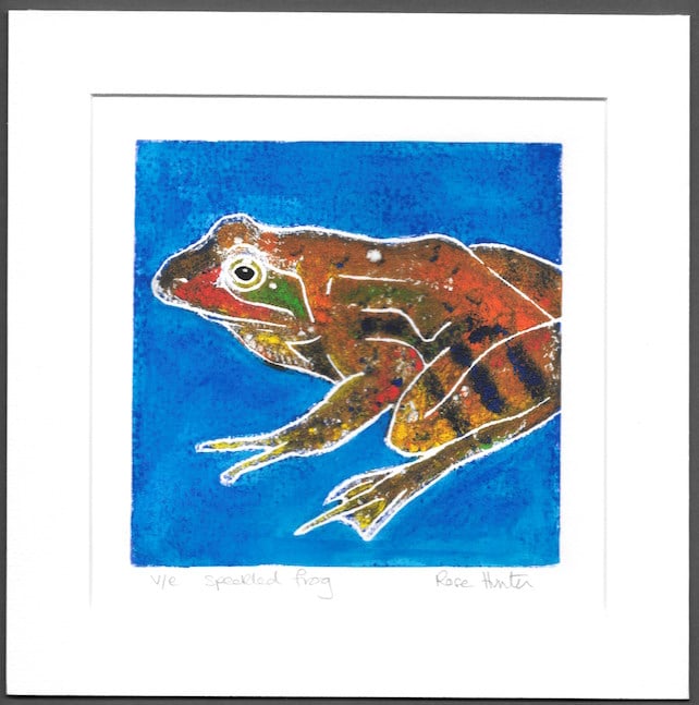 Frogs are brilliant. They eat the slugs in your garden and watching frogspawn develop into tadpoles and become frogs is a delight for young and old. When looked at closely they are beautifully colourful and just like the children’s song very ’speckled’.