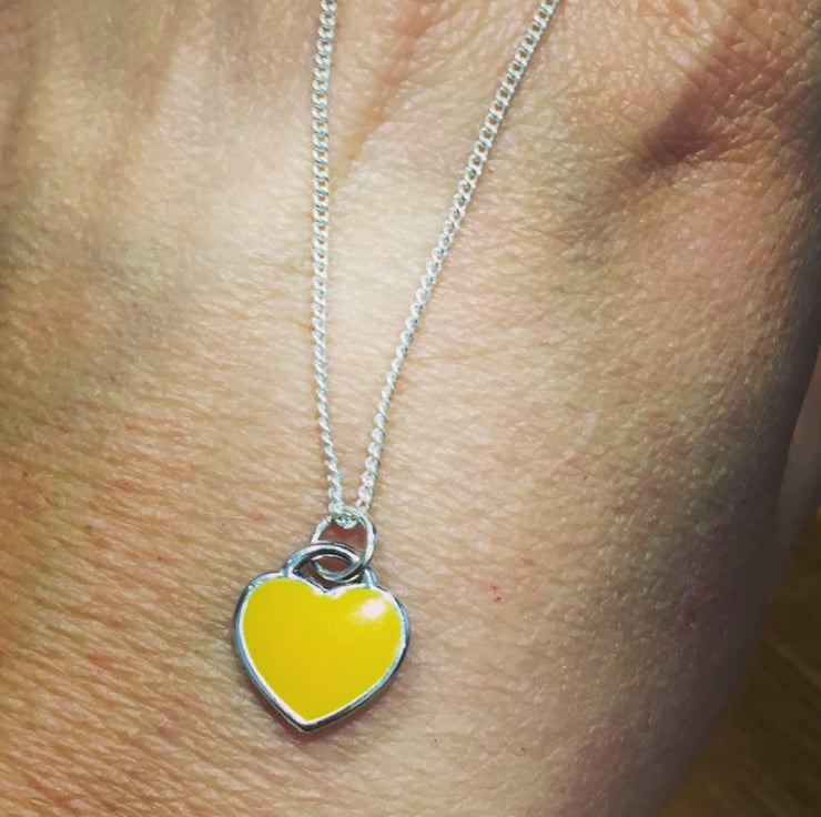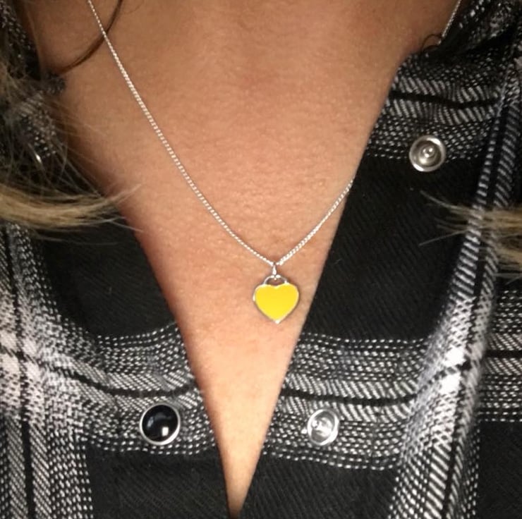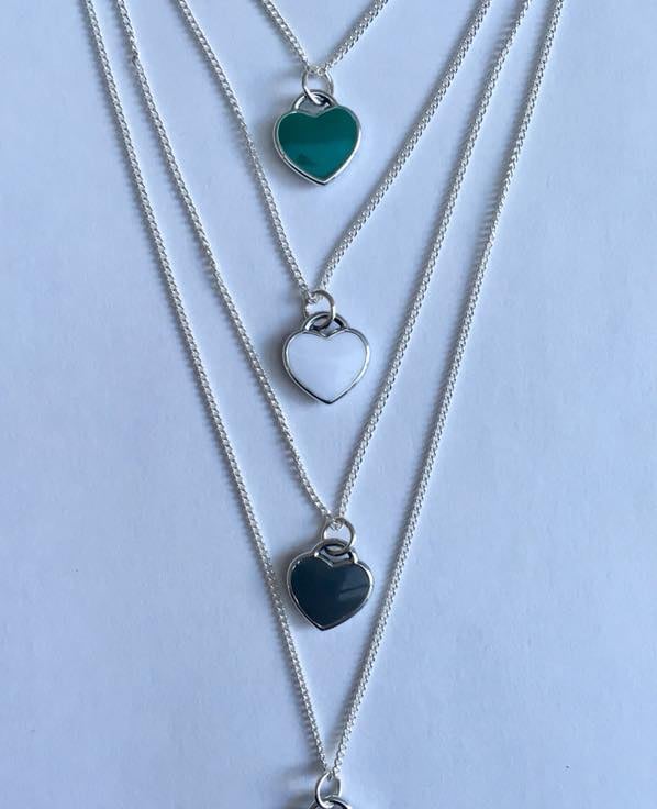 Pretty Enamel Heart fine necklace silver plated yellow grey turquoise white