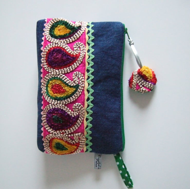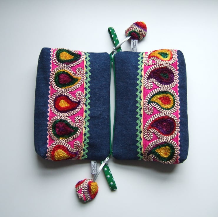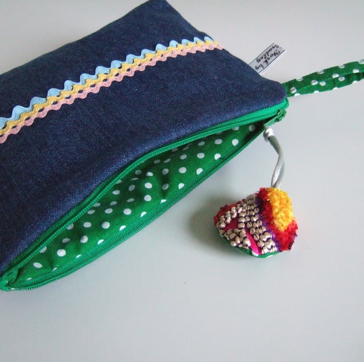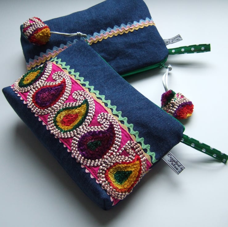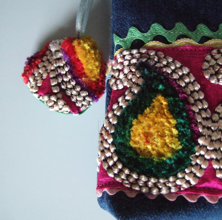 This wonderful braid comes from Pakistan, via Birmingham market! It makes up into a great bag when mixed with denim and a faded vintage ric-rac trim. Perfect for taking on holiday, for storing special treasures in, or simply hanging up somewhere special to admire those wonderful colours.