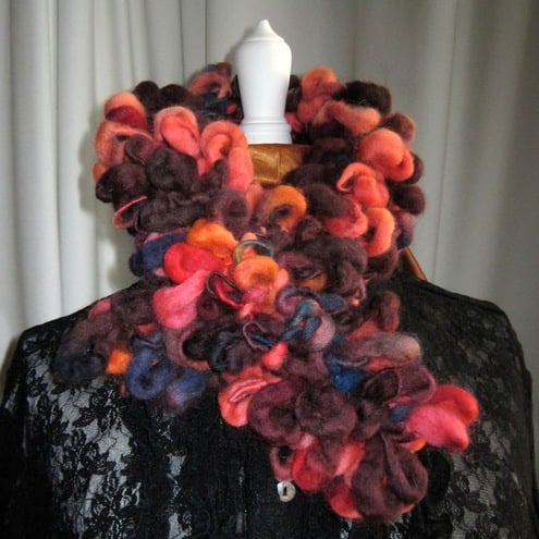 A stunning neckwarmer, handmade in pure wool, it will brighten up the dullest of days.