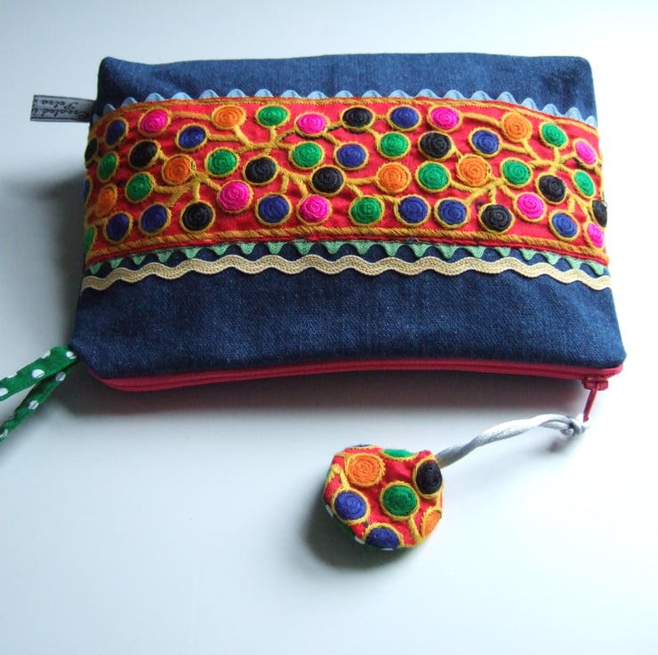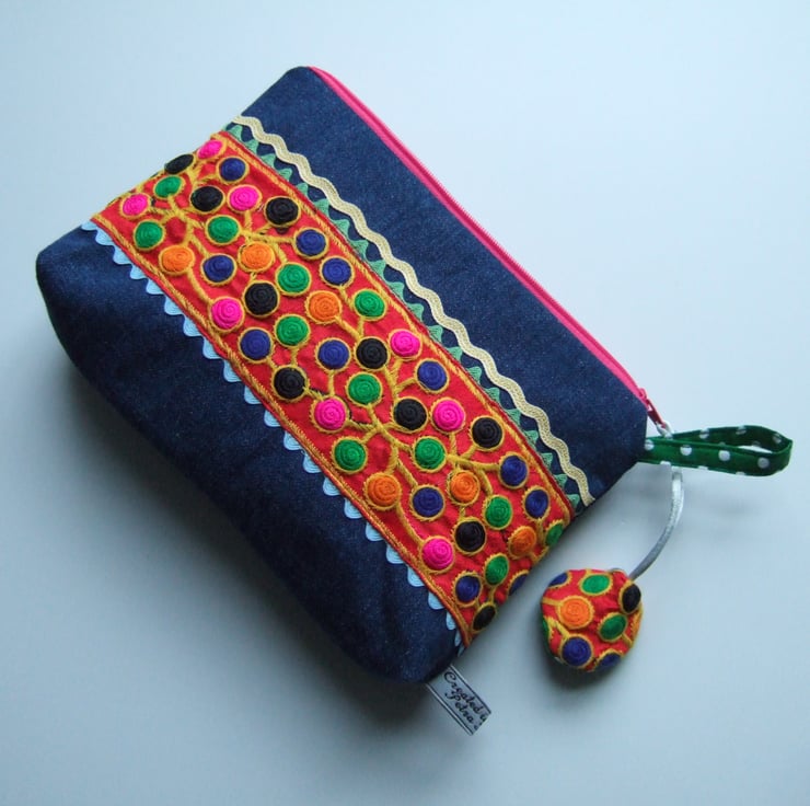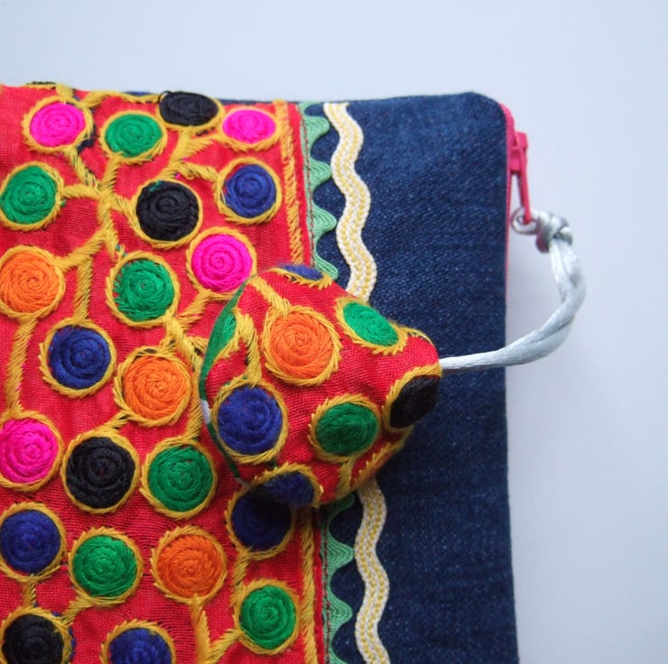 This wonderful braid comes from Pakistan, via Birmingham market! It makes up into a great bag when mixed with denim and a faded vintage ric-rac trim. Perfect for taking on holiday, for storing special treasures in, or simply hanging up somewhere special to admire those wonderful colours.