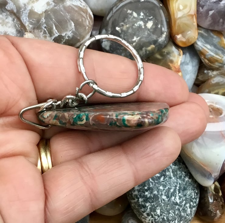 This stunning and vibrant Ocean Jasper pendant bead is something which should be on show so I thought it would make a fantastic keyring, or handbag charm for any lucky lady. If you wanted to buy a gift as a token of love, or friendship, then this would be ideal. Equally, ideal for anyone who just loves Gemstones.
