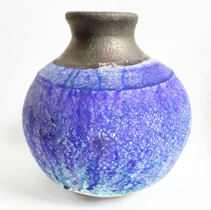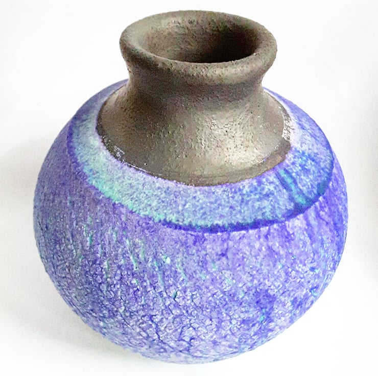 The main body is glazed in a beautiful blue glaze the rim is in a dark bronze glaze