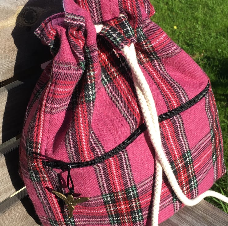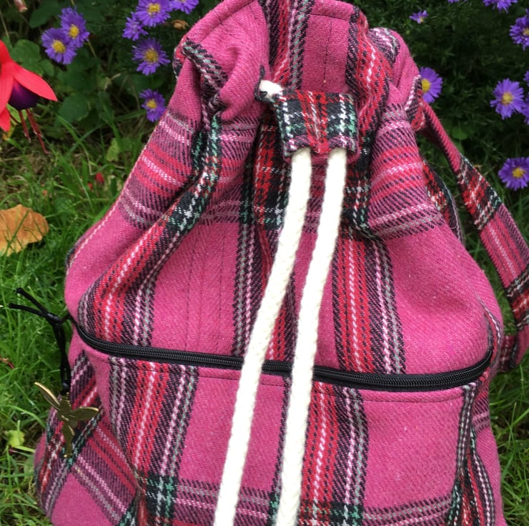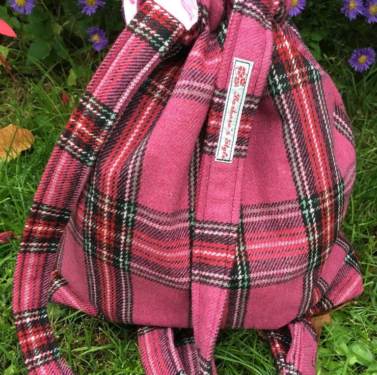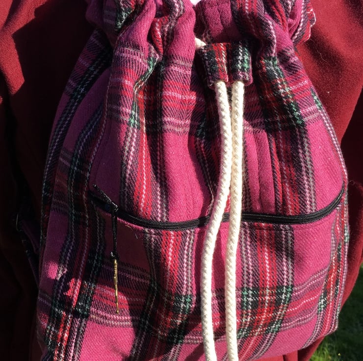 This unique rucksack is made with good tartan fabric, which feels comfortable to wear.