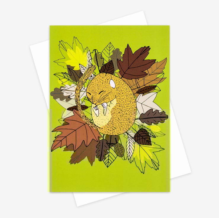 This card was inspired by dormice hibernating for winter in a little ball of leaves.