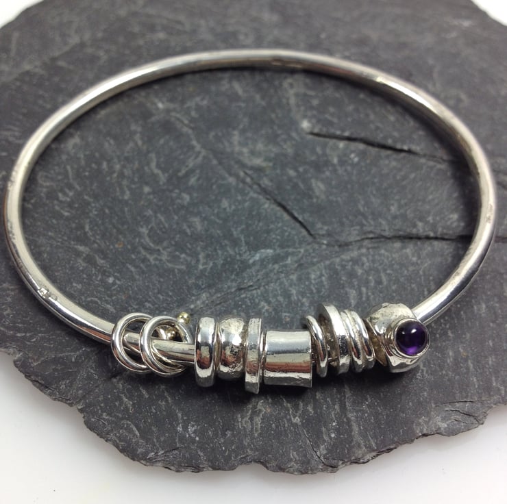 A sterling silver oval bangle with 10 beads