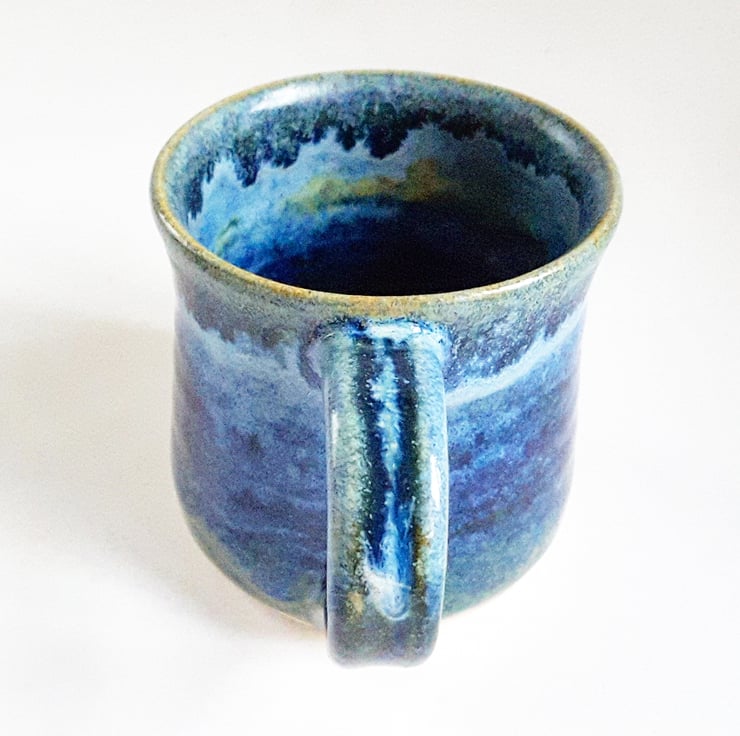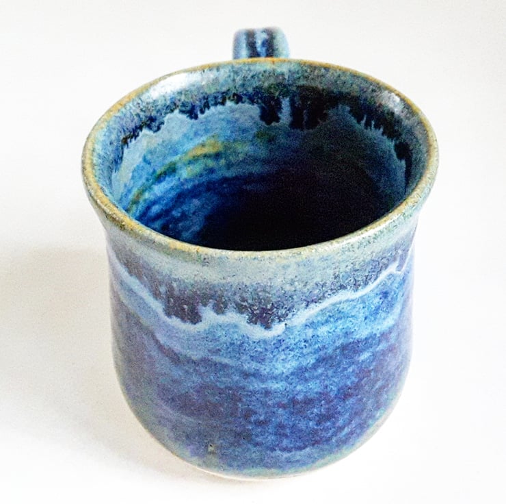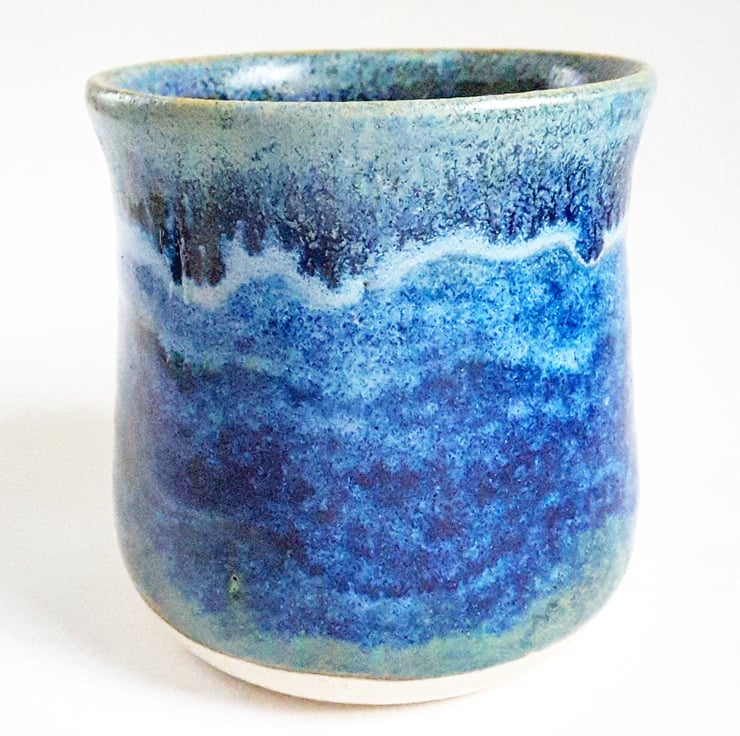 Thrown on my potters wheel and glazed in a variety of blue glazes.