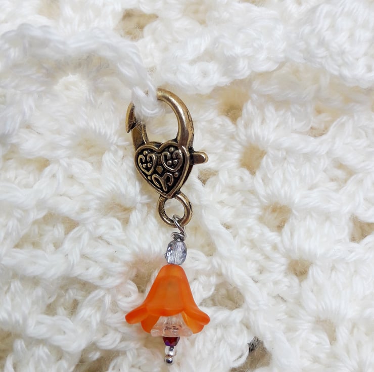 Pretty and colourful, Lucite flower and crystal crochet beaded stitch markers.