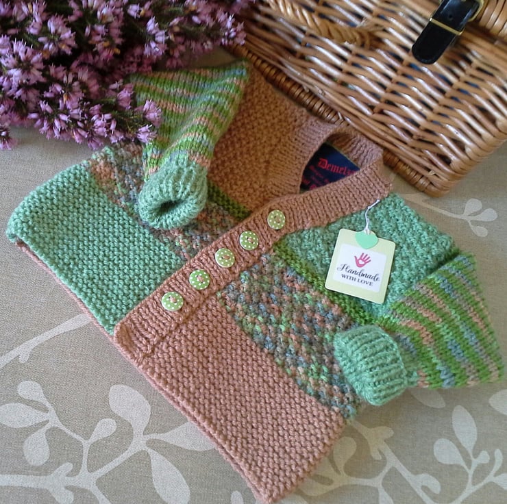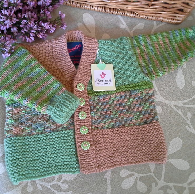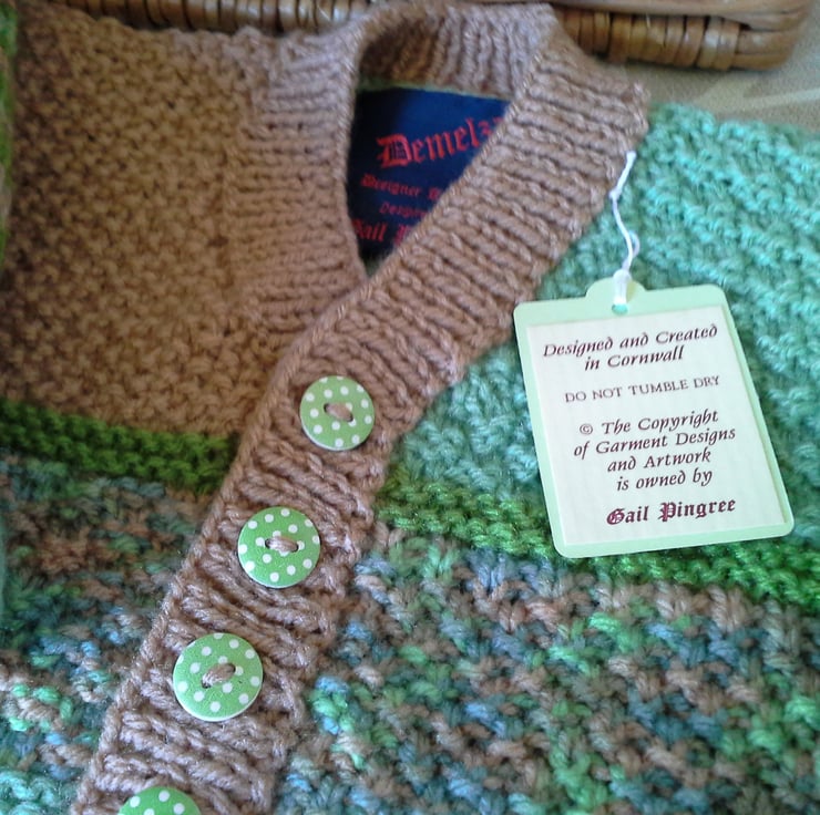 A lovely practical baby boys jacket/cardigan designed and totally hand crafted by myself using quality branded British and French manufactured yarns which are machine washable at low temperatures.