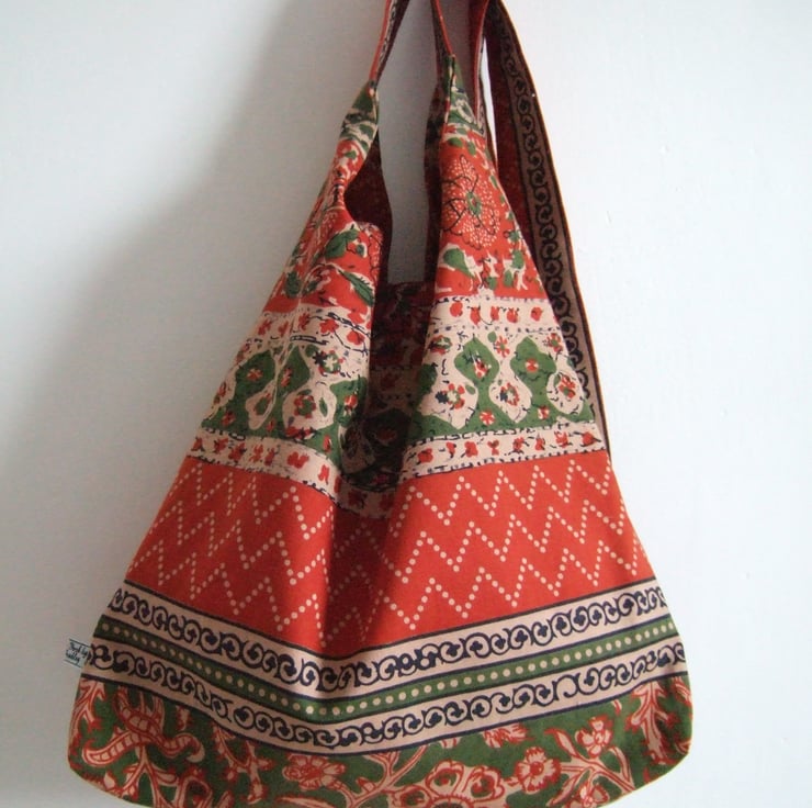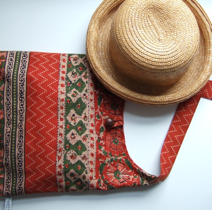 Handblocked vintage Indian fabric across your body bag.