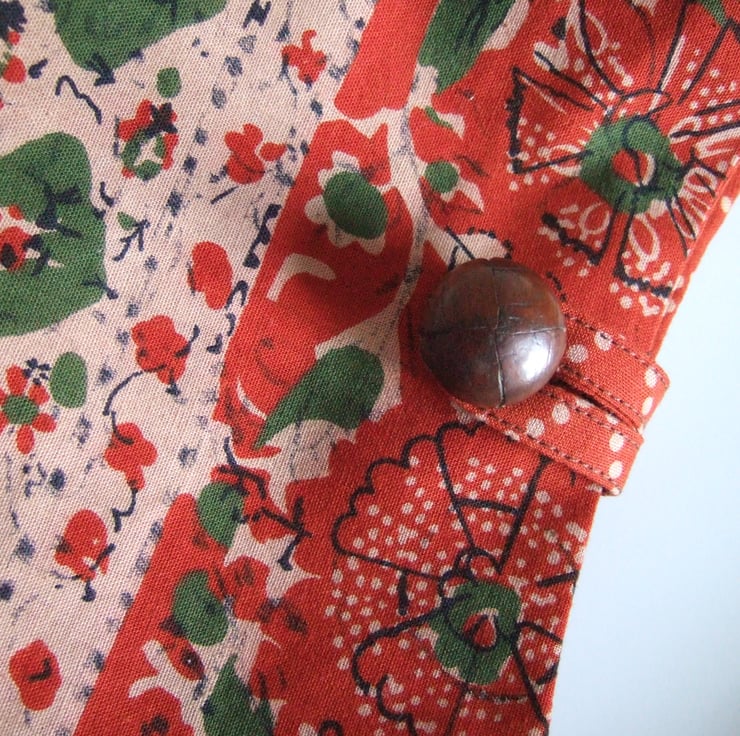 Deep breath, and smell the patchouli oil. This across your body bag is made from a lovely vintage Indian hand blocked print. So reminiscent of the 1970s, and being re-loved again today, for its use of colour and craftsmanship.