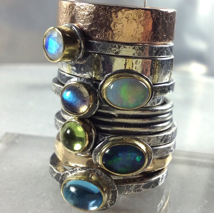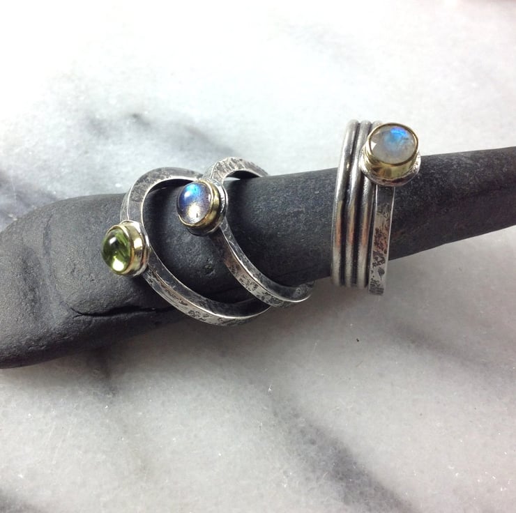 The ring band is made from 2mm square profile silver . These rings look great worn alone or as stackers.