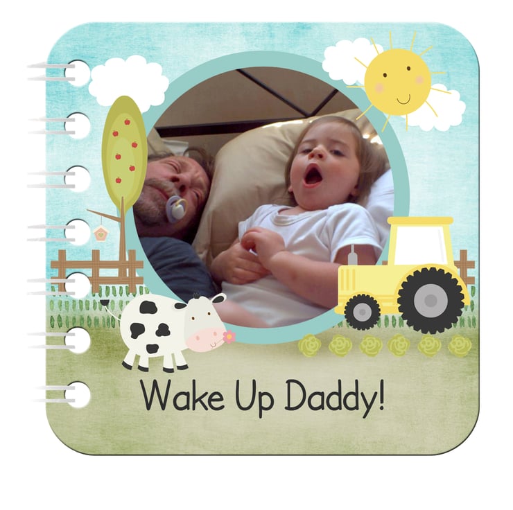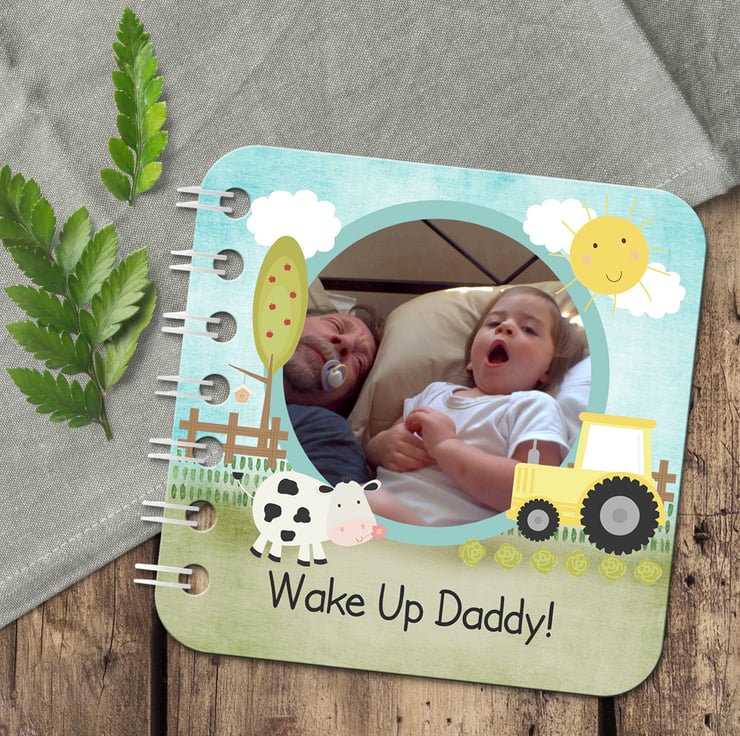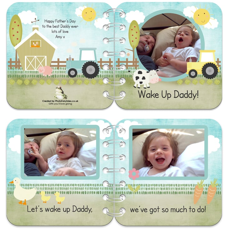 A truly special gift, this handmade personalised baby board book features your own photos and wording throughout. Created especially for you, ‘Farm Yard’ is one of a range of personalised board book designs I create and is perfect for little boys & girls: featuring tractors, blue skies and lots of cute farm animals.