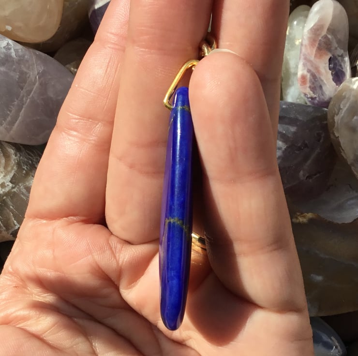 This pretty stabalised Lapis Lazuli is particularily beautiful, midnight blue as it’s base with golden sparkling veins spread throughout the Stabalised lapis.