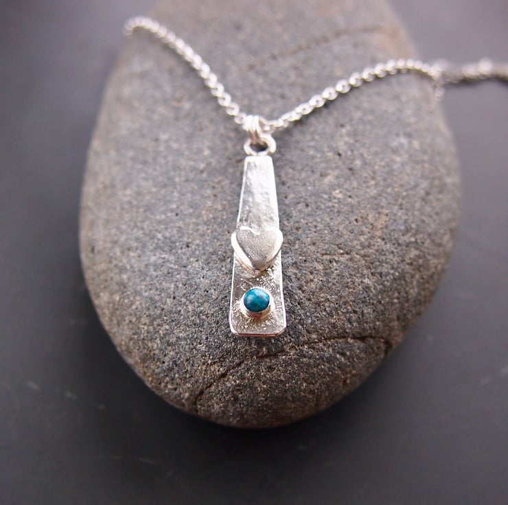 One of our fine silver tags with a custom made heart and a 4mm cabochon .The tag is 4cm and the chain is 18 inches with a lobster claw fastening. We can fit any of our 4mm stones to order- choose from the drop down menu- top right.