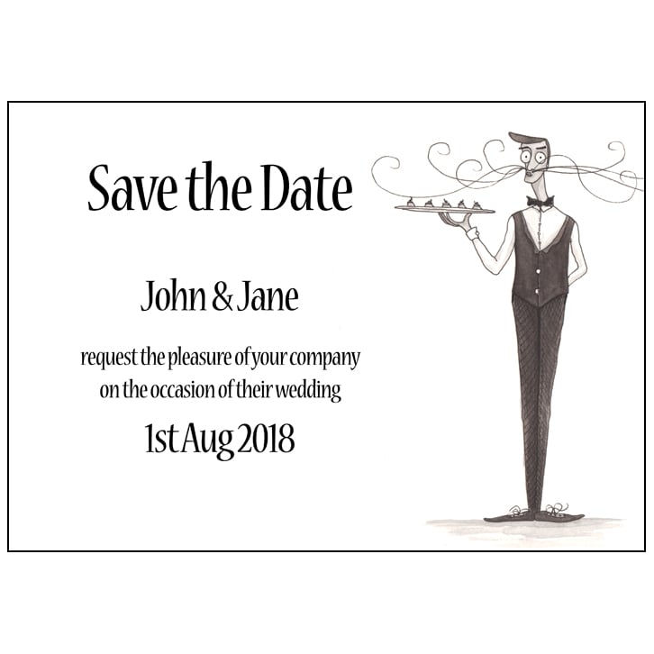 The front features the pictured black and white illustration, with your choice of names and date. Please let me know the names and date you would like to be printed when ordering. Each postcard is A6 in size. I painted the original illustration with pen and ink wash.