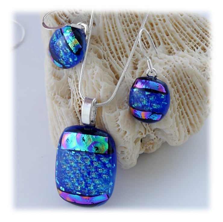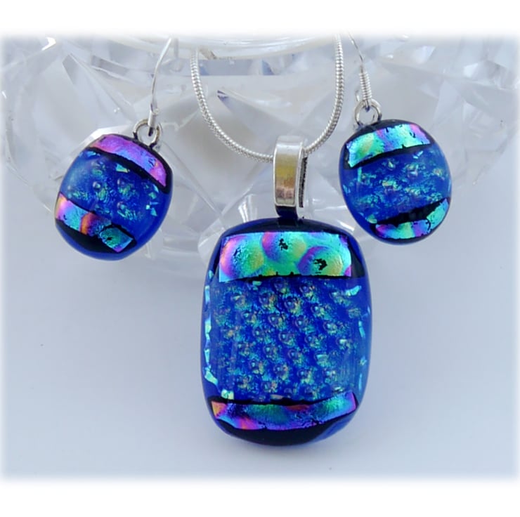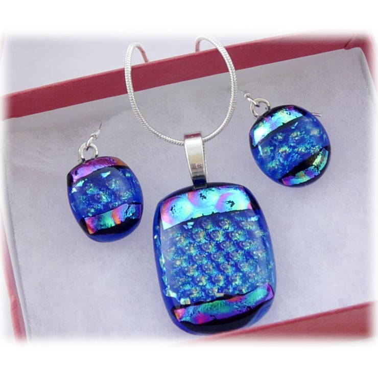 The dichroic glass cabochons for the pendant, matching earrings were handmade, by me with love.
