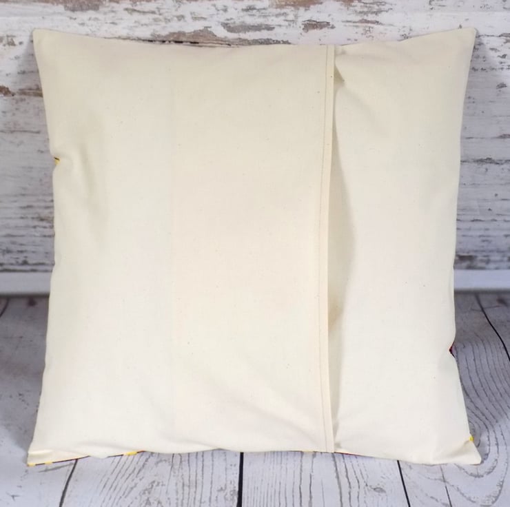 Fits 16" x 16" or 18" x 18" cushion pad (the cushion in the photo is 16", 18" will look a bit plumper). Please note that cushion pad is not included, just to save on postage costs. Depending on the cut of the cloth there is likely to be some variation in pattern placement.