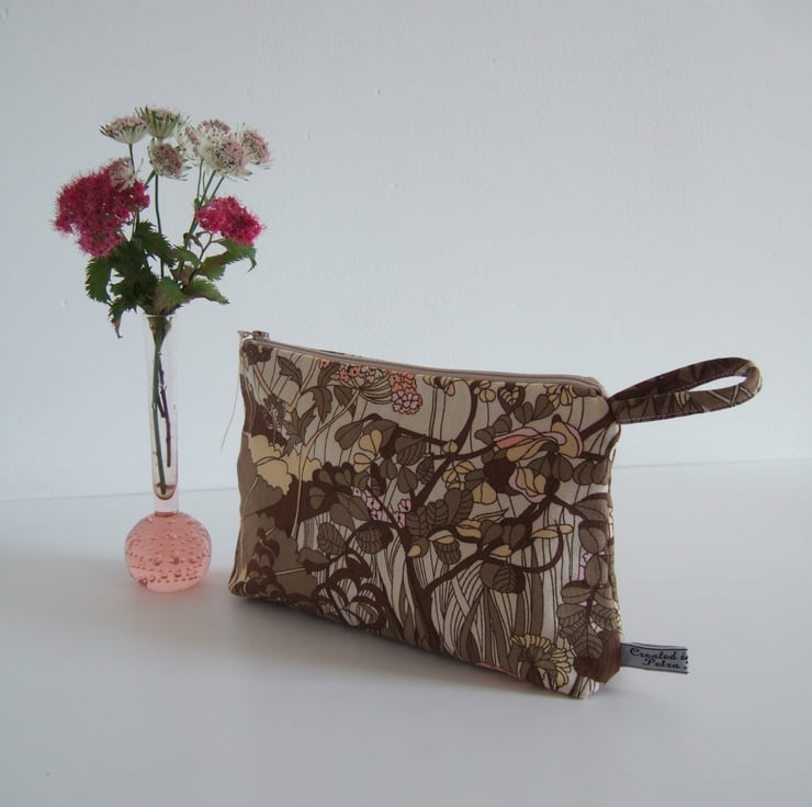 Hedgerow design vintage fabric toiletries, make up or storage bag.