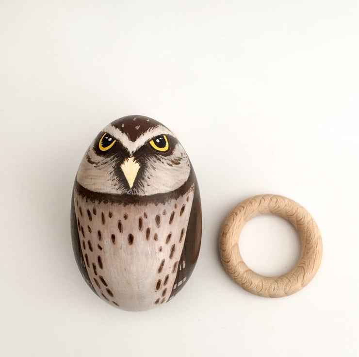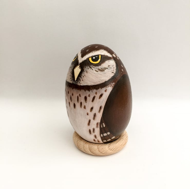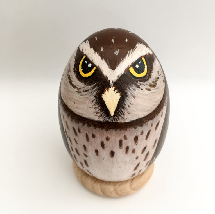 This is a little owl that I have hand painted on a solid beech wood egg.