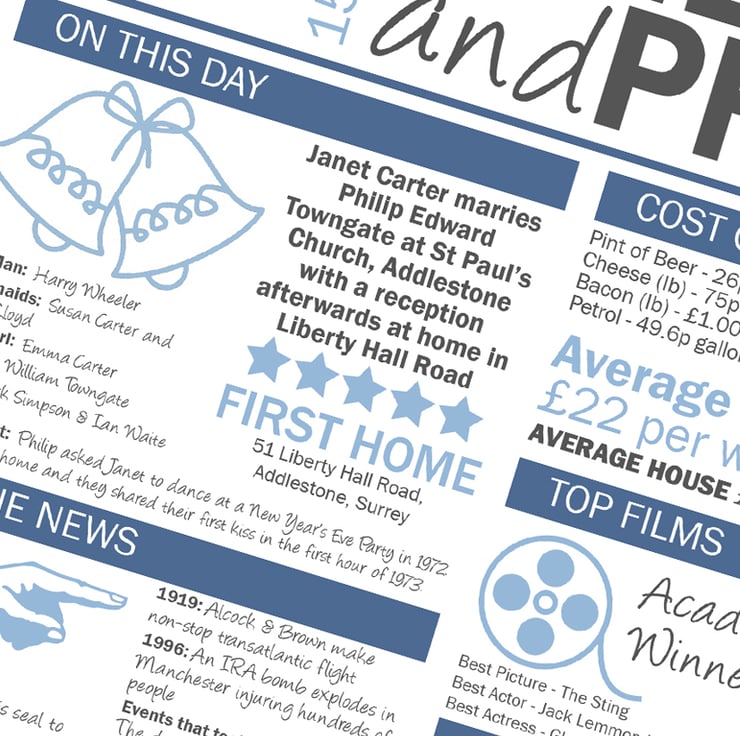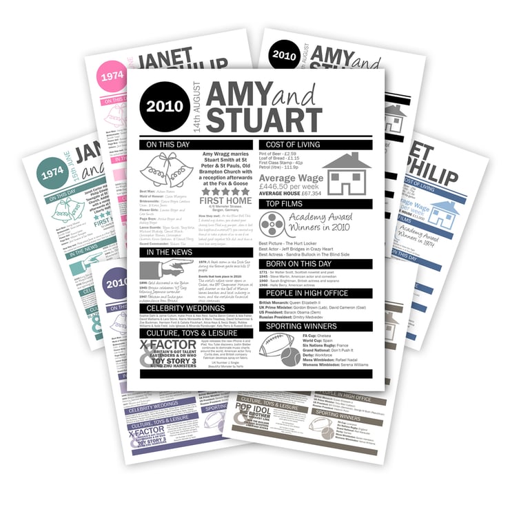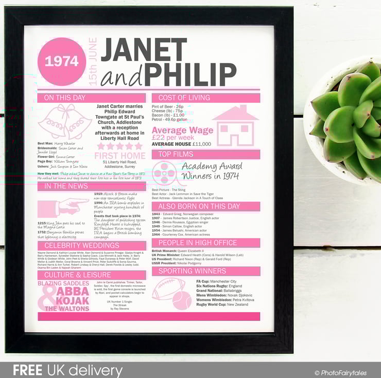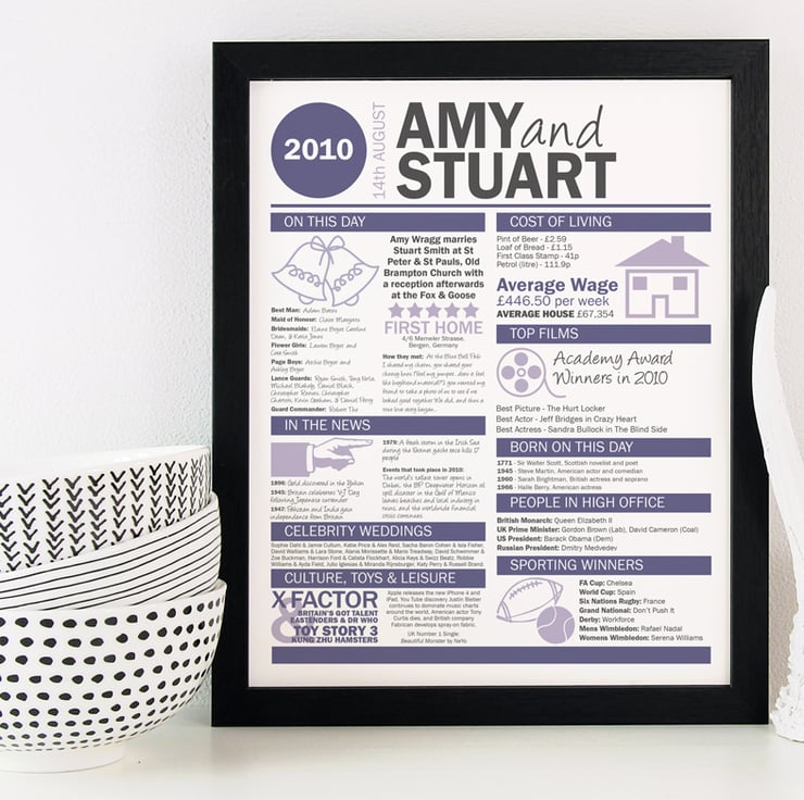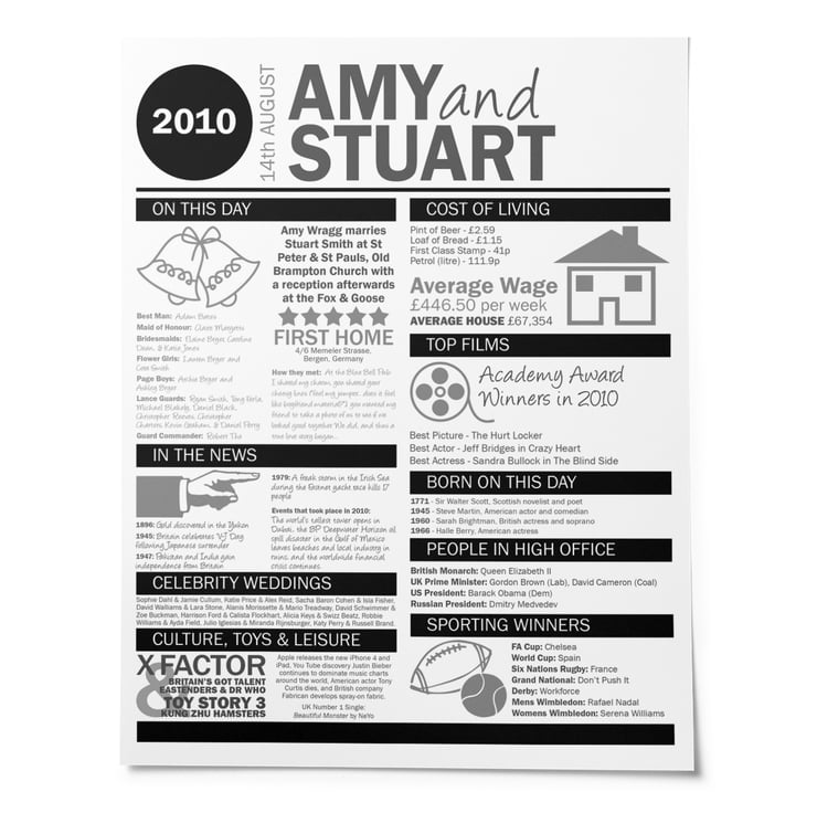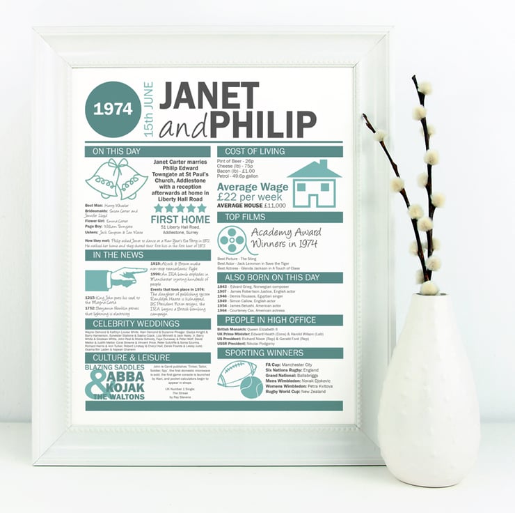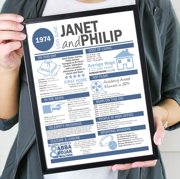 This fabulous print is a truly special anniversary gift – discover what was happening in the world on the day you were married by commissioning your very own, especially researched, personalised print!