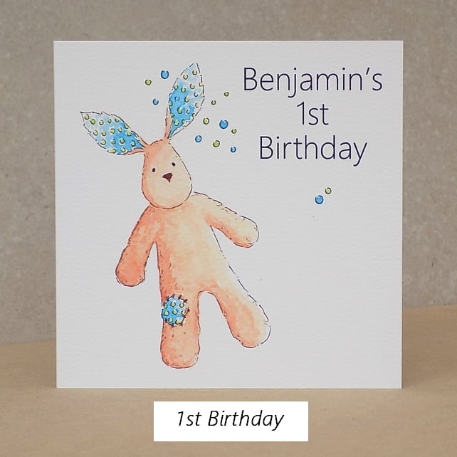 This listing is for a personalised New Baby or 1st Birthday bunny card please choose either;