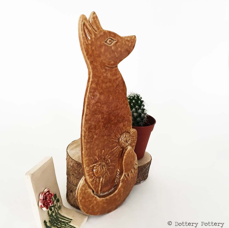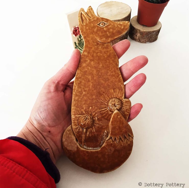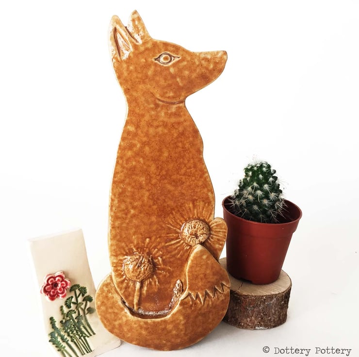 This ceramic fox decoration is made from textured stoneware clay with all the individual pieces hand cut and decorated with pattern.