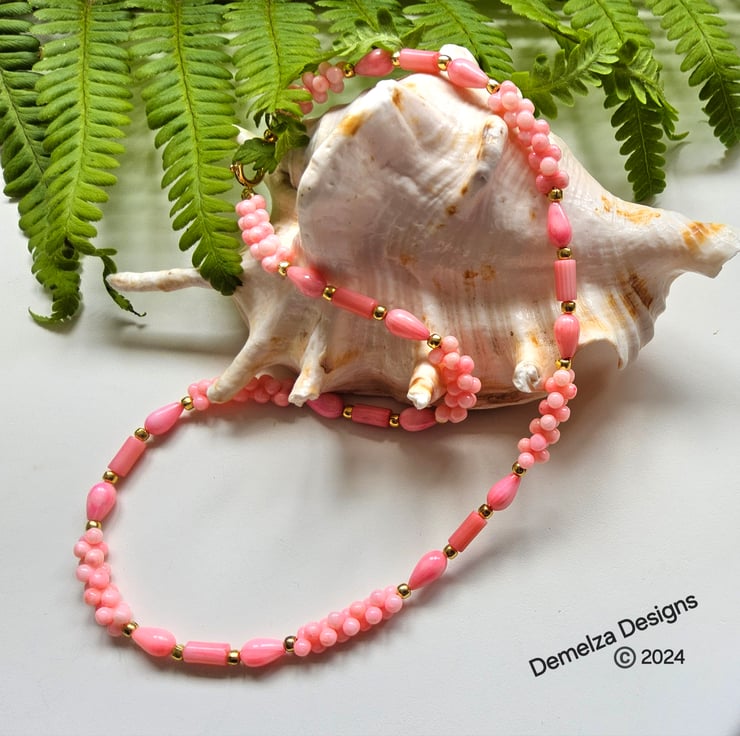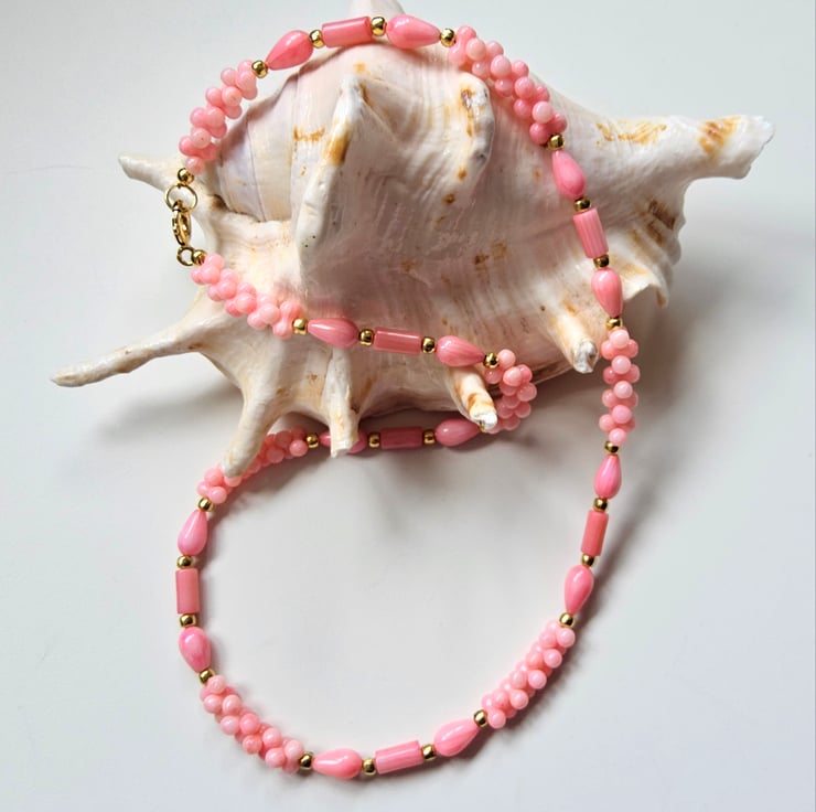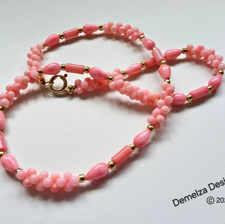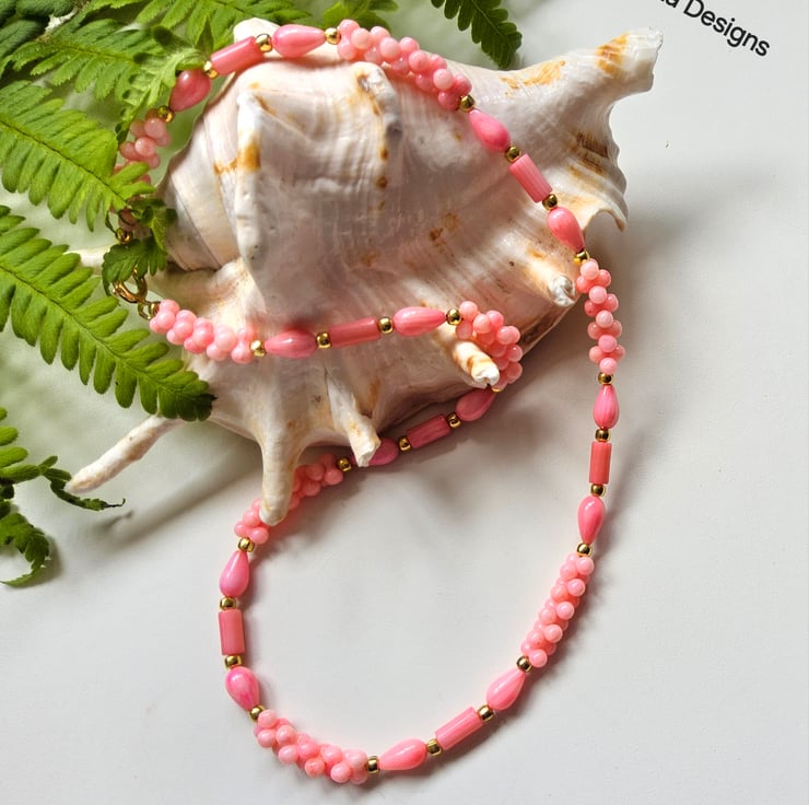 A lovely pretty feminine necklace designed and hand crafted in Cornwall using peach coloured farmed coral, complimented with genuine gold vermeil findings. Vermeil is a term used within the jewellery industry worldwide when gold has been electroplated over sterling silver. It is not the same as gold plate over cheaper base metals such as brass or copper.
