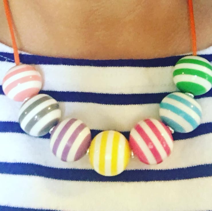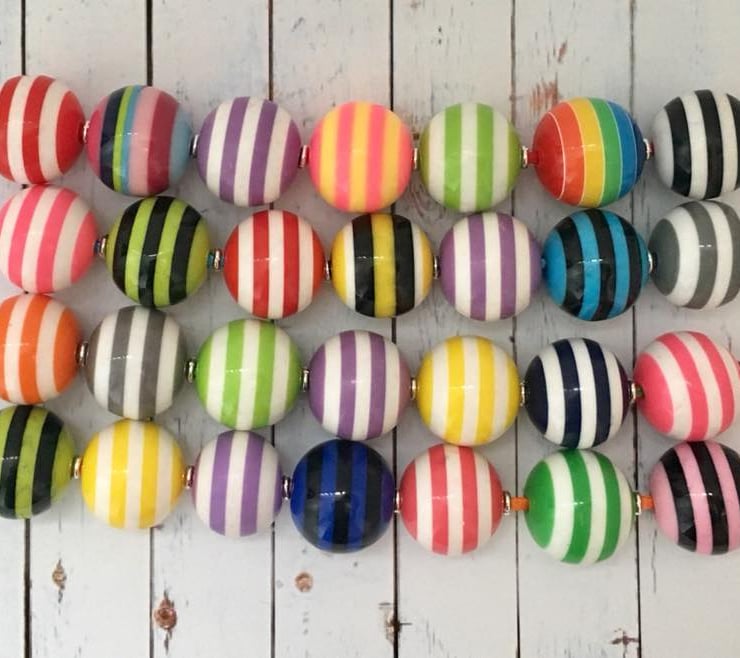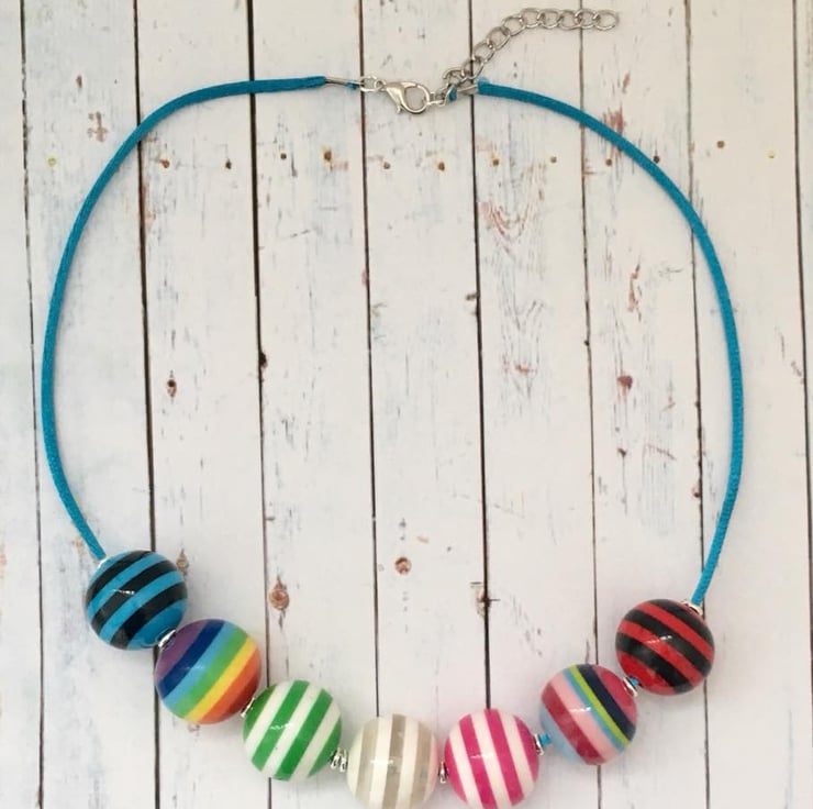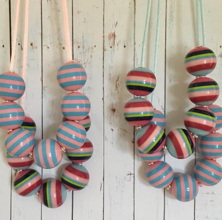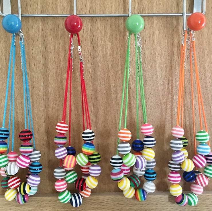 These gorgeous bright necklaces are perfect for summer - lots of lovely stripe beads on coloured cord in a choice of sizes