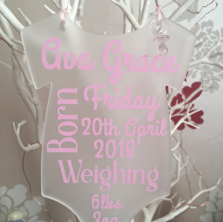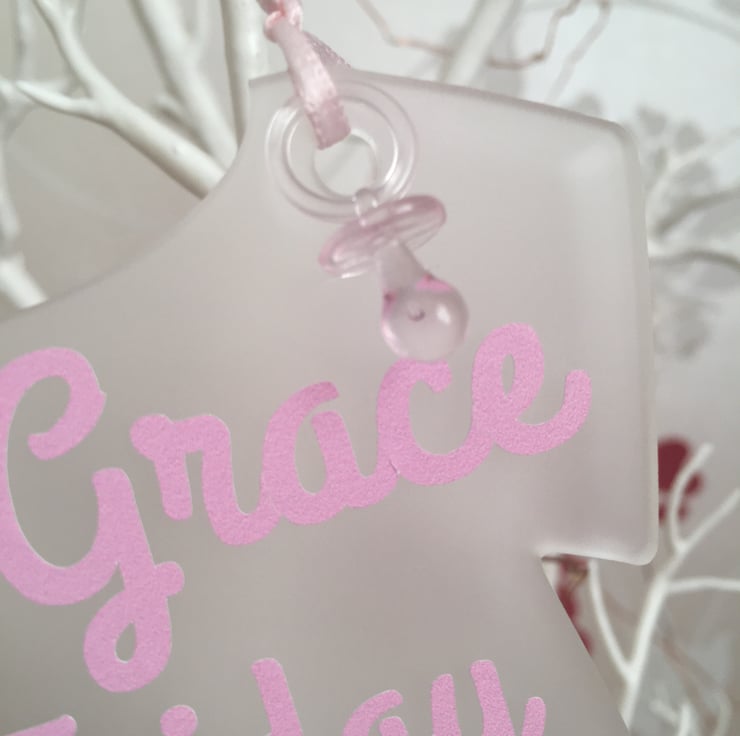 Made from Professional vinyl in a lovely baby pink tied with baby pink ribbon for hanging