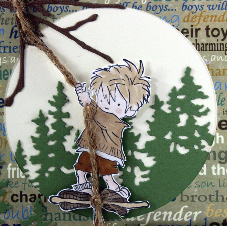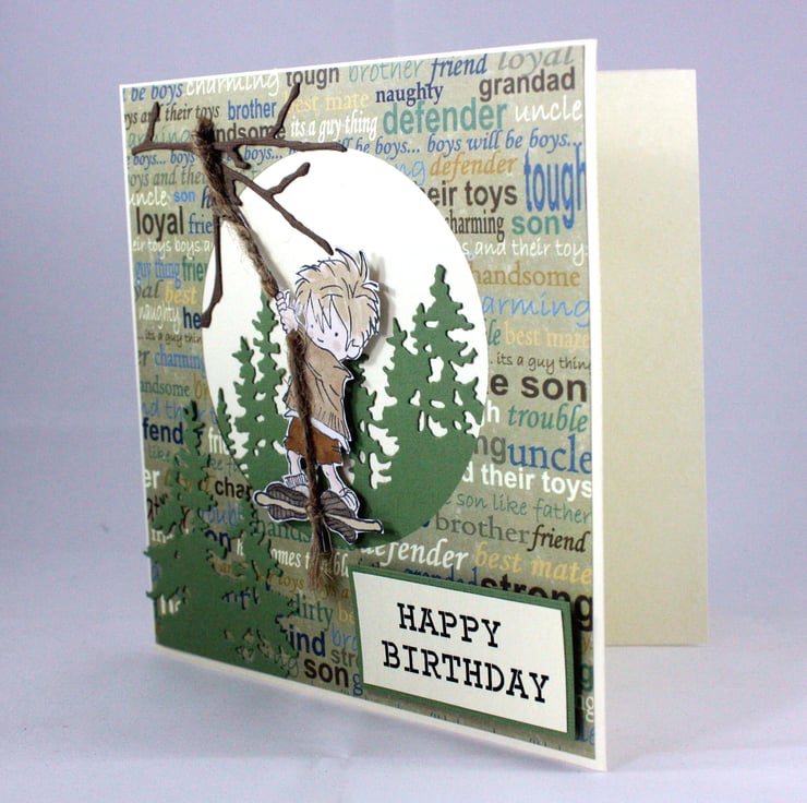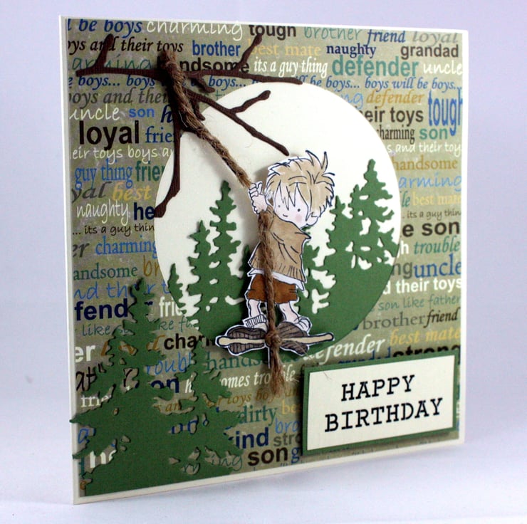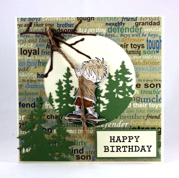 The image has been overlaid onto a background of male related words and die cut trees. The message reads 'Happy Birthday'
