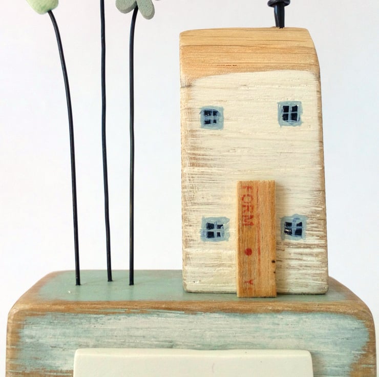 A delicately made free standing piece in muted tones for a mantle or shelf, this cosy little house is looking for a home.