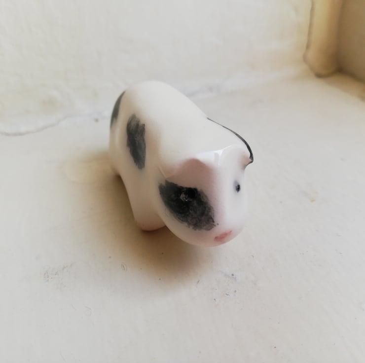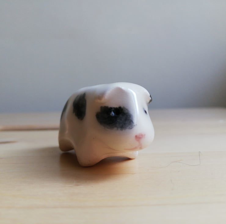 Hand made guinea pig sculpture in black and white - a little pocket pet friend for piggie lover .