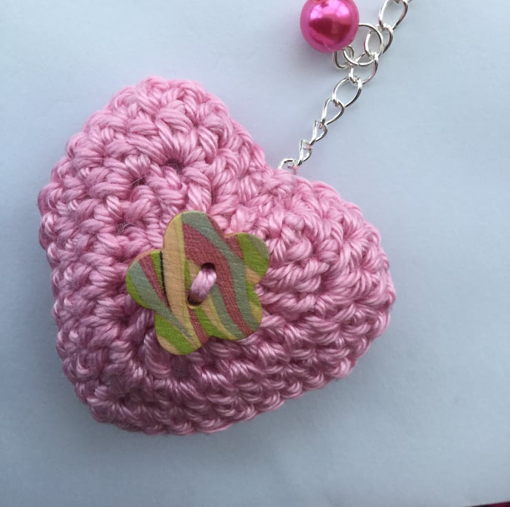 I have crocheted this small heart in a pink 100% cotton yarn with a small amount of toy stuffing inside.