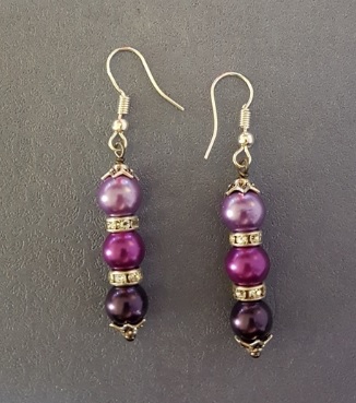 Gorgeous shades of Purple glass pearls separated by clear crystal rondelles and dangling from silver hooks. Beautiful colours for the Summer with a little sparkle.