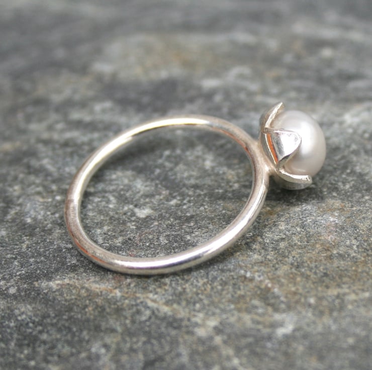 Pearl and silver ring